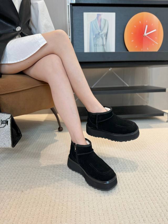 冬季人手必备单品,搭配系数也是百分百 1鞋面:优质牛反绒 2内里:澳洲进口羊皮毛一体 3大底:轻便发泡+橡胶底片防滑大底35-40 4颜色:黑色 .白色 .棕色