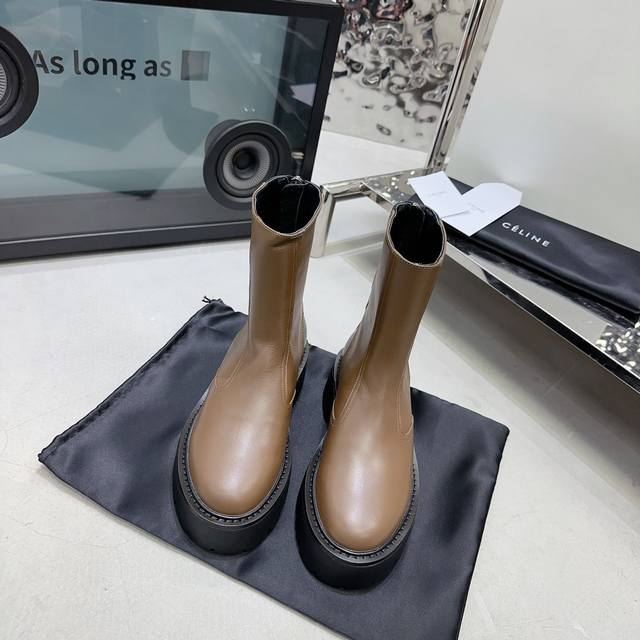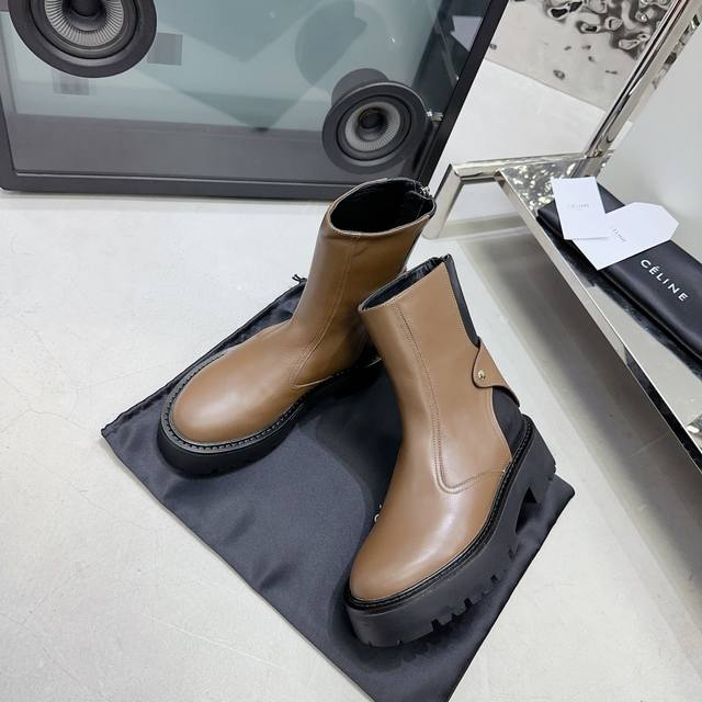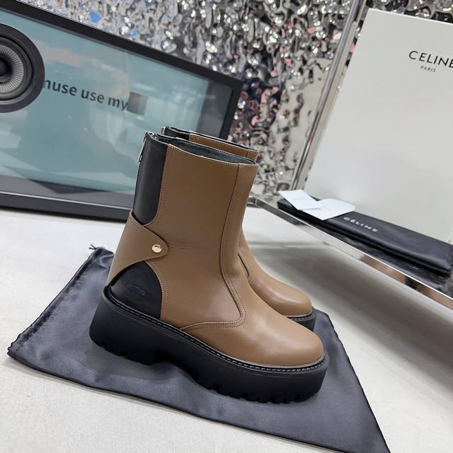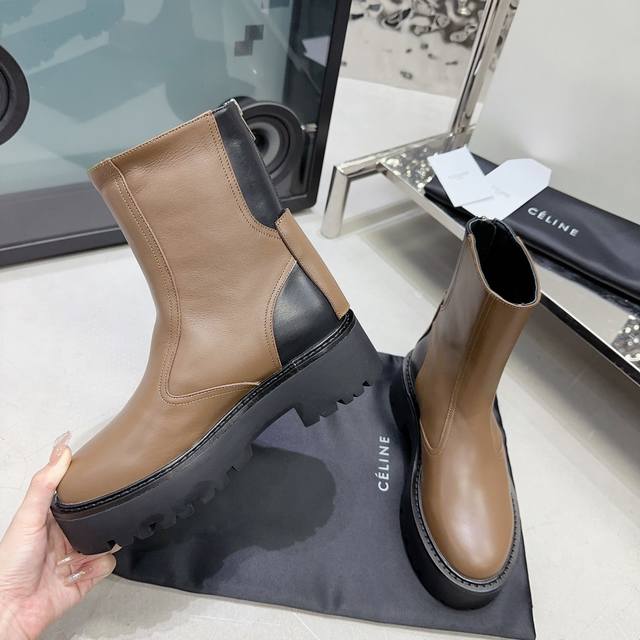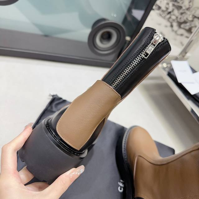 cx秋冬CELINE思琳马丁靴、无敌显瘦马丁靴、做旧双色效果小牛皮√皮质柔软鞋底厚5cm左右、增高显腿细,真的好好看。