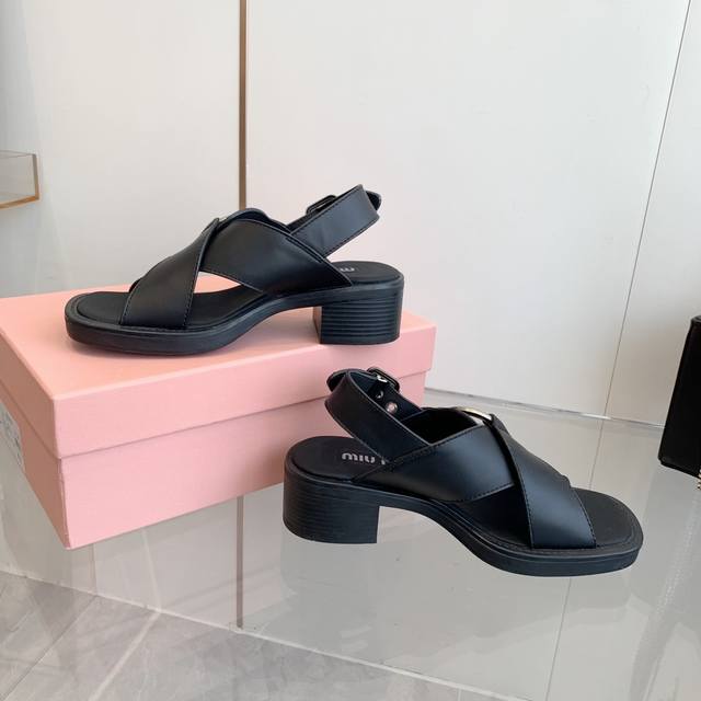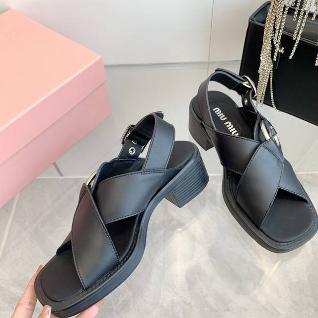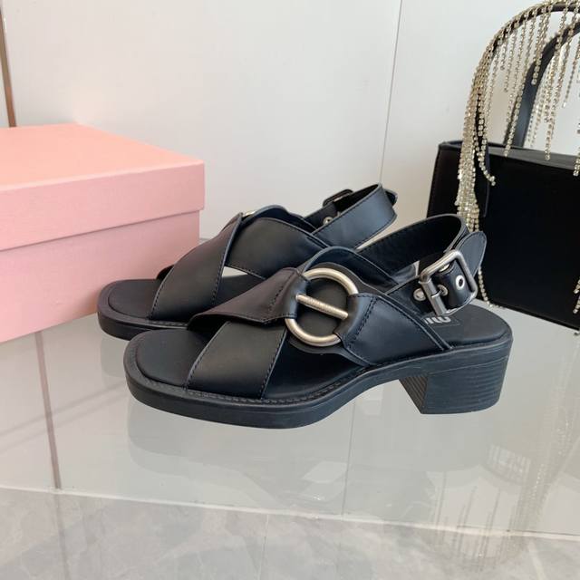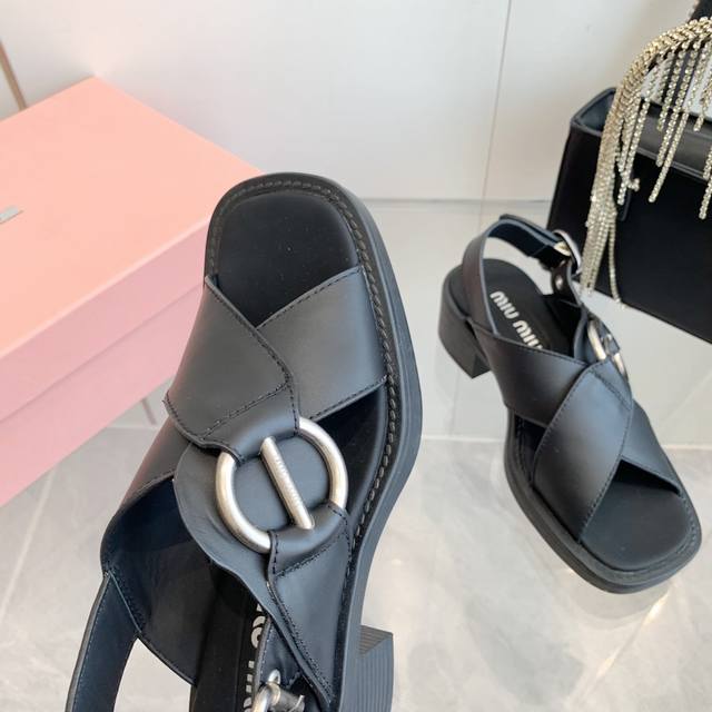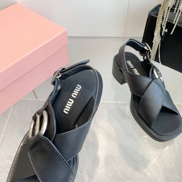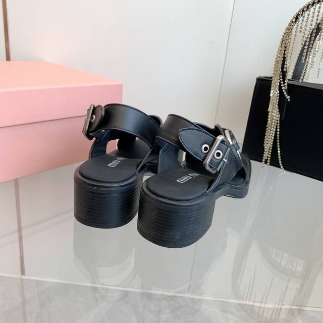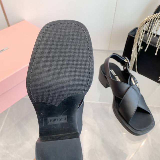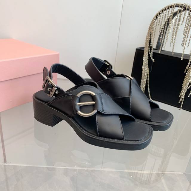 Miumiu 缪缪英伦简约风机车凉鞋粗跟圆头中性十足!百搭款 怎么穿都好看今夏时髦精最爱