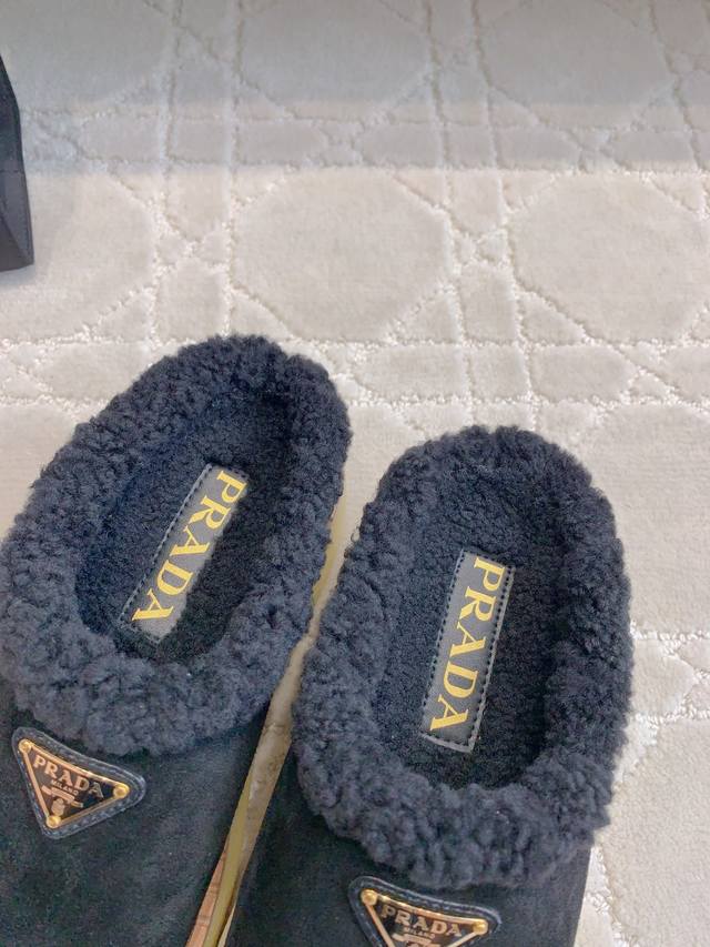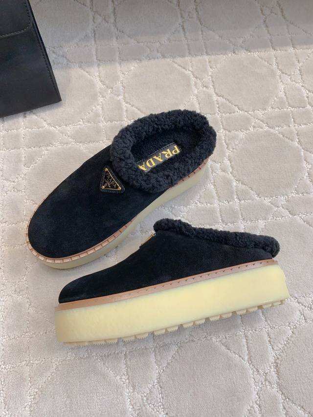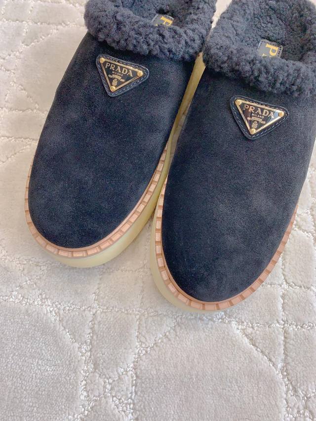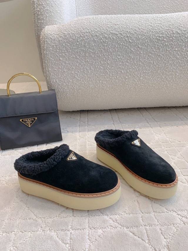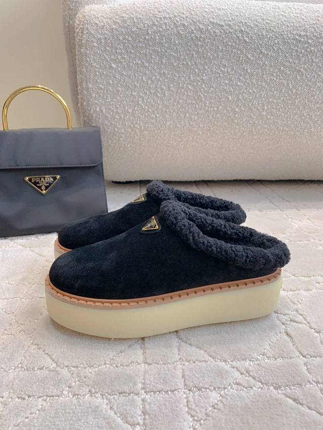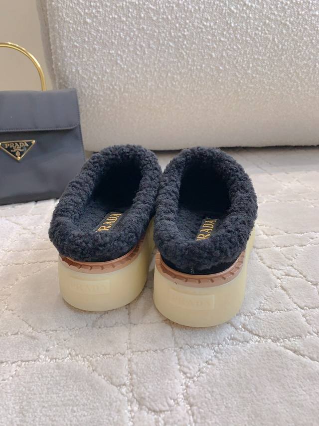 PRAD*新款厚底羊毛半拖鞋 专柜同步 升级版羊毛内里 厚实保暖 舒适度满分 复古又时髦
