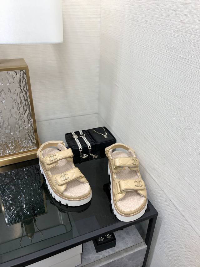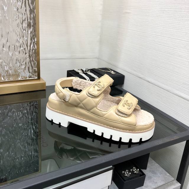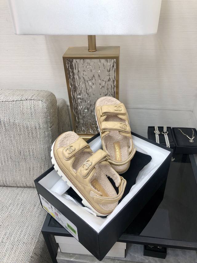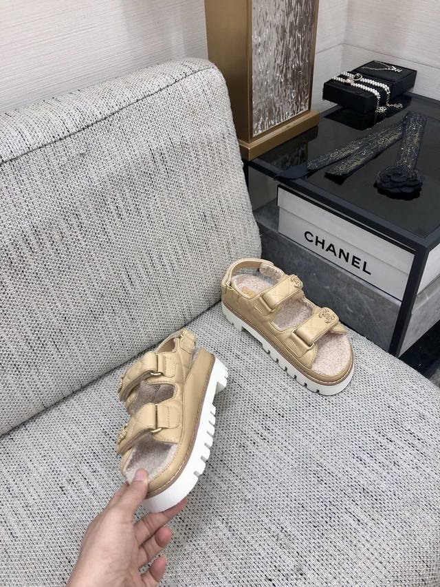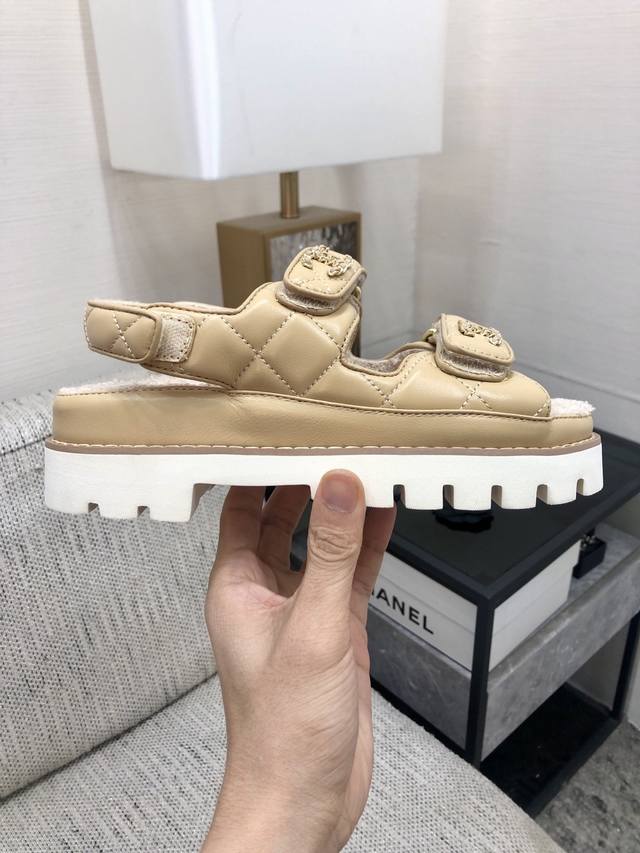 出厂价 顶级 品质2024K厚底魔术贴凉鞋 混种羊皮面 进口保暖羊反绒内里 垫脚 水台1比1开模 原版私家开模轻量化发泡大底 SIZE:35-41 41定做不退
