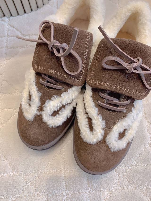 出厂价 UGG新款羊毛保暖系带休闲鞋 超级厚实保暖 经典百搭款 鞋面牛反绒 内里垫脚进口澳洲一体羊皮毛 尺码35-39 40定做