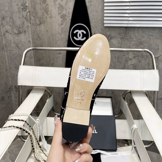 出厂价p 真皮底 顶级! Ch***L 小香万年经典款 百搭系列 顶级系列芭蕾平底鞋 奢华永不退去的经典~材质:进口混种小羊皮 进口毛呢 内里垫脚:柔软羊皮 S
