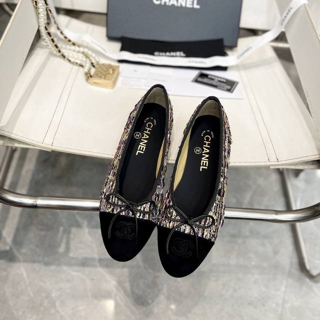 出厂价p 真皮底 顶级! DDD Ch***L 小香万年经典款 百搭系列 顶级系列芭蕾平底鞋 奢华永不退去的经典~材质:进口混种小羊皮 进口毛呢 DDD 内里垫脚:柔软羊皮 DDD Size:34-43 34,35.5 36.5 37.5 38.5 39.5 41,42 43定做不退换 DDD