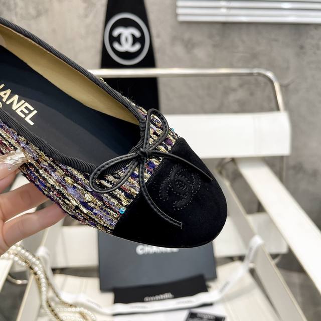 出厂价p 真皮底 顶级! Ch***L 小香万年经典款 百搭系列 顶级系列芭蕾平底鞋 奢华永不退去的经典~材质:进口混种小羊皮 进口毛呢 内里垫脚:柔软羊皮 S