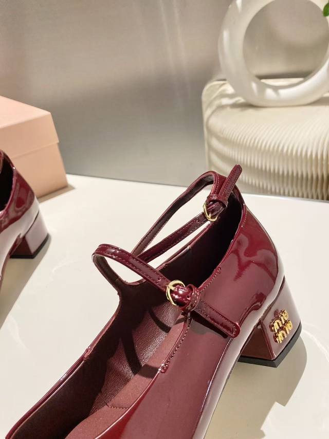 出厂价P 。缪缪2025秋冬新款升级工艺打造精品,采用字母扣装饰 ,超级百搭 经典时尚款 对脚型没那么纤瘦,对高脚背的妹子更友好了鞋面:进口牛漆皮 内里:山羊皮