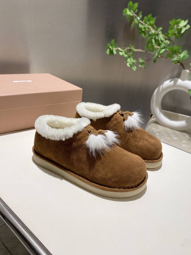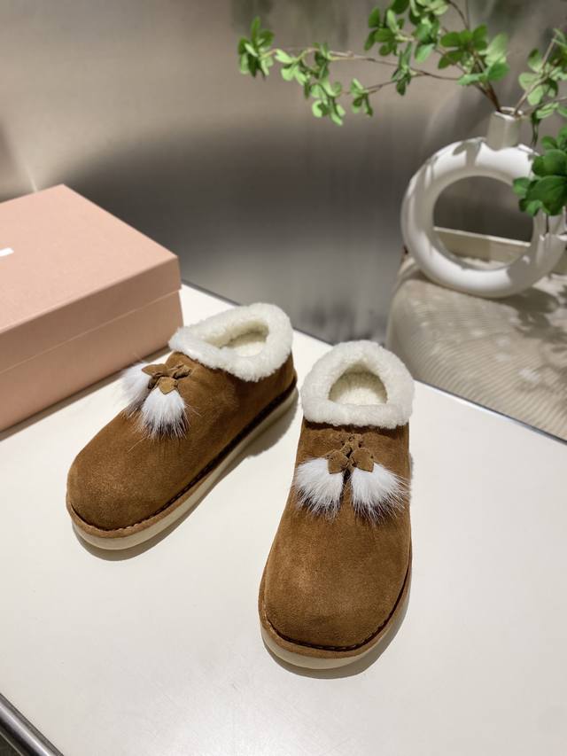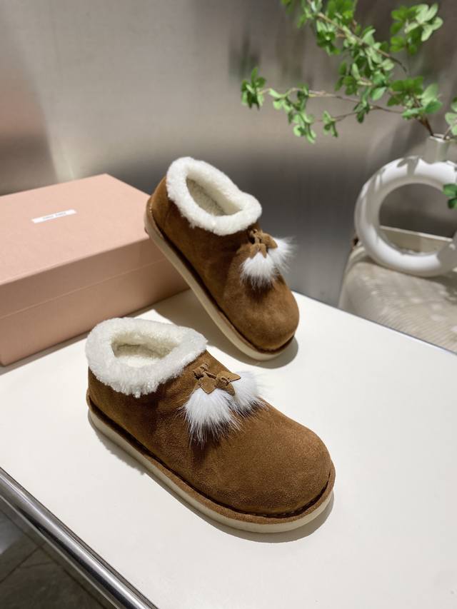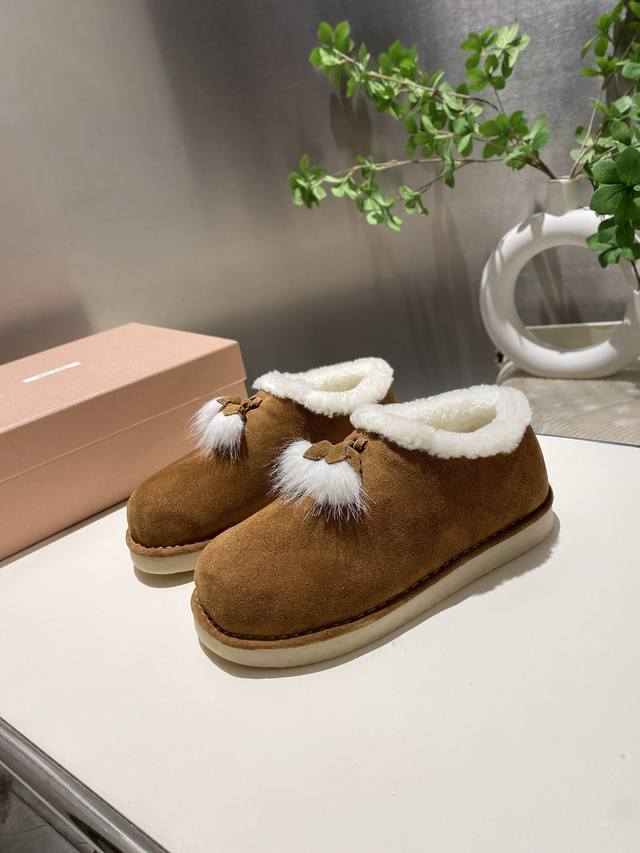 / 出厂价p 。缪缪2025秋冬走秀新款雪地靴.今年最值得入手的靴子 没有之一!各大网红明星上脚 Miumiu今年 秋冬限定款 ,专柜非常难买 看着很硬的样子 其实