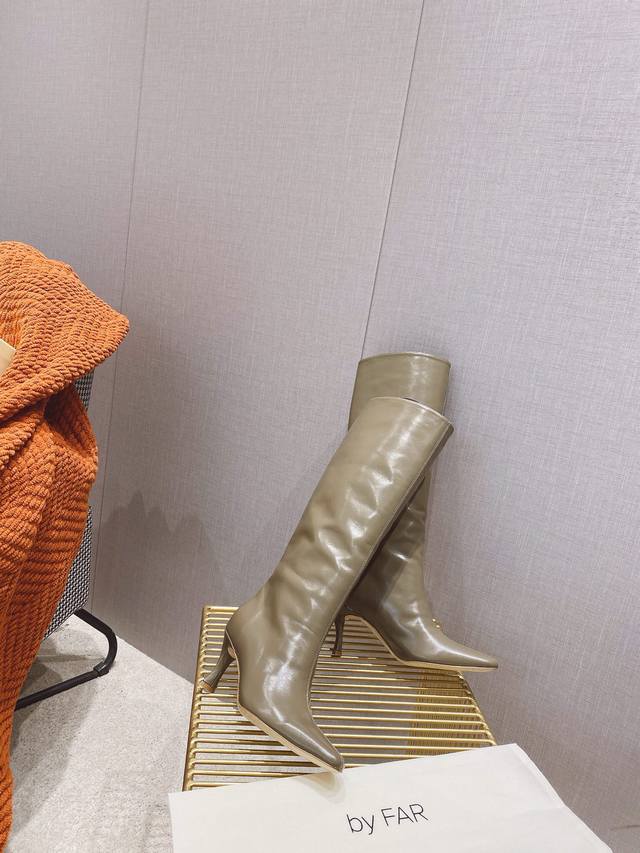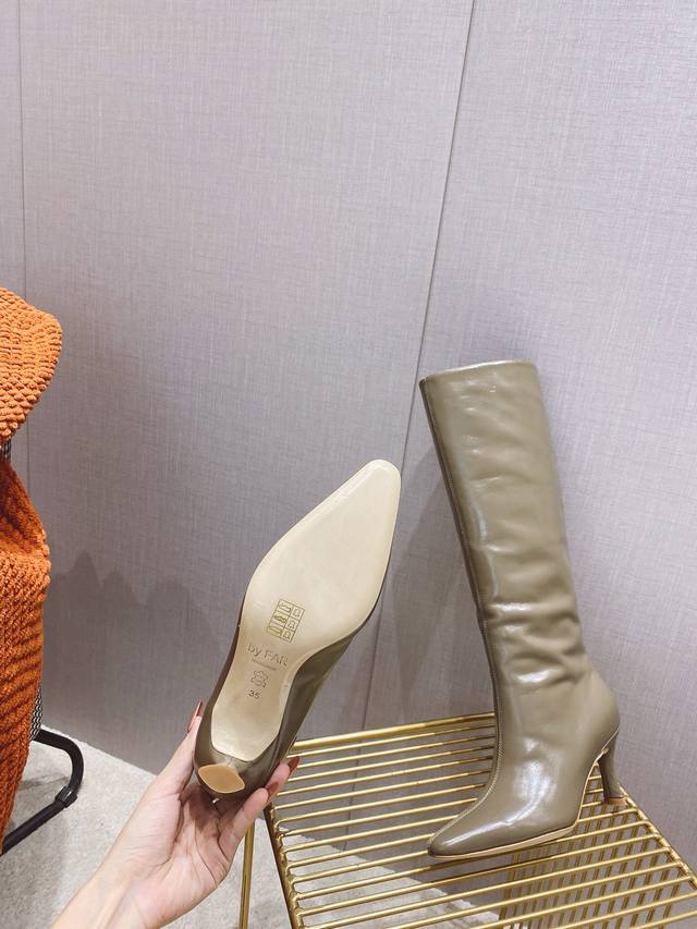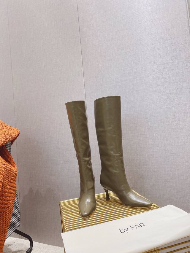 出厂价P By Far 2025秋冬上新 气质款 全皮版 小猫跟 新款长靴 1:1 正品购入 小方头 更加时髦 拉长腿型 可以看到我们靴子侧面是按照人体腿型设计
