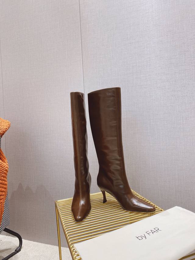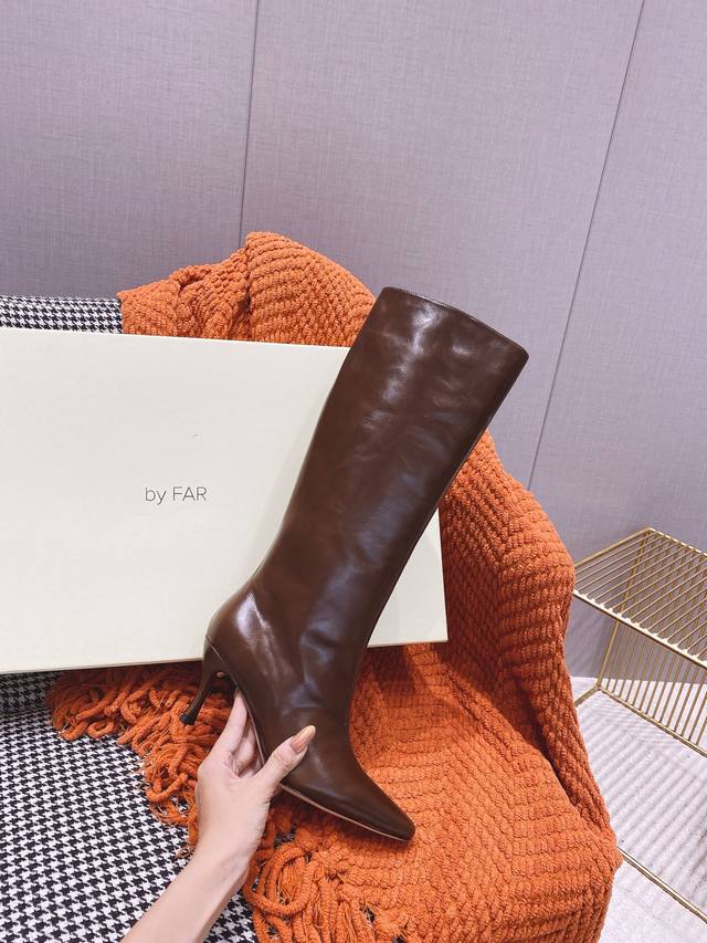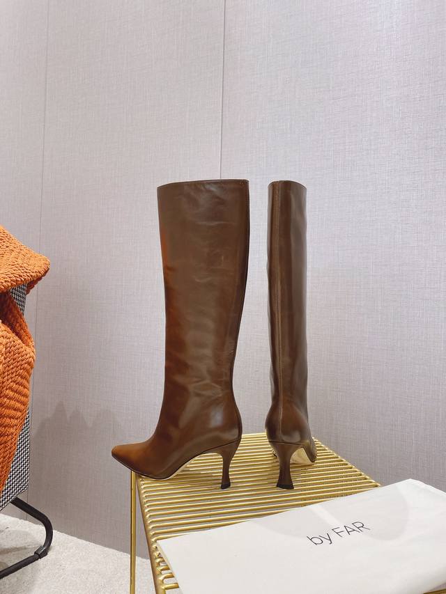 出厂价P By Far 2025秋冬上新 气质款 全皮版 小猫跟 新款长靴 1:1 正品购入 小方头 更加时髦 拉长腿型 可以看到我们靴子侧面是按照人体腿型设计