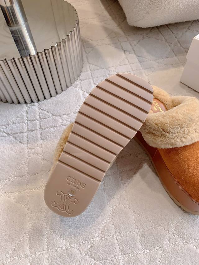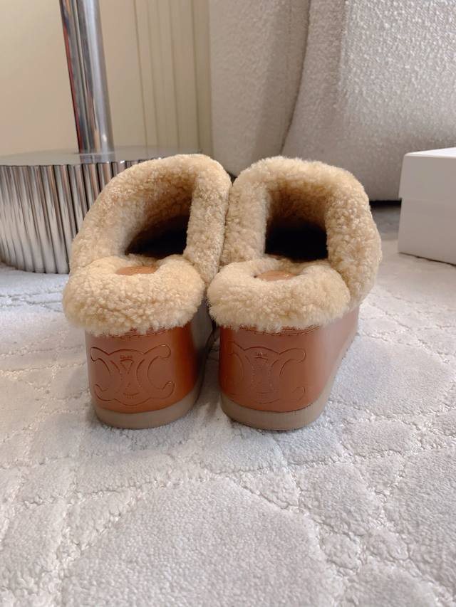 出厂价P Celin*新款毛毛厚底拖鞋 超级厚实的澳洲进口羊毛 犹如踩在云朵般的感觉 超级舒适 经典百搭款 面料进口澳洲羊毛 原版开模大底 跟高7Cm 尺码35