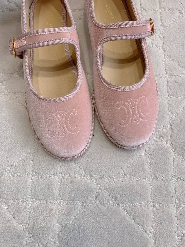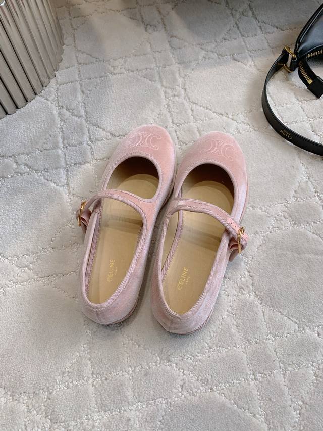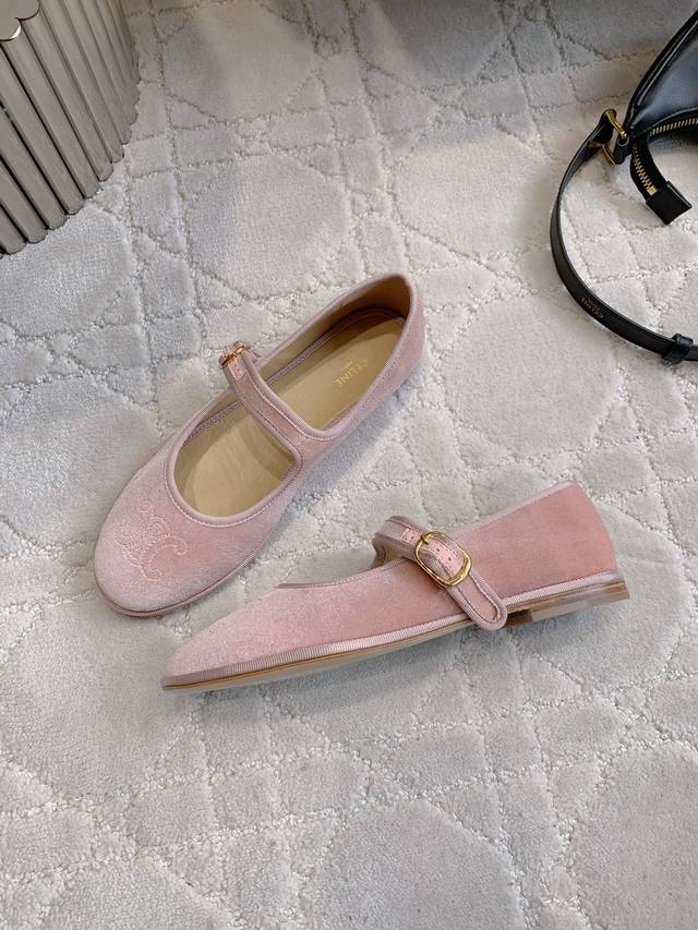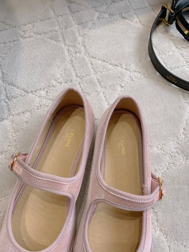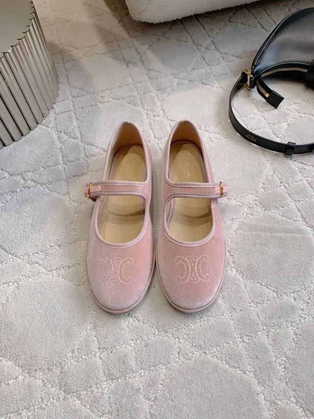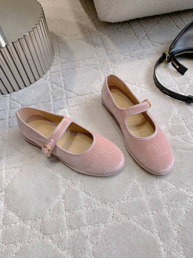 出厂价P Celin*新款玛丽珍平底鞋 这一季的美到心坎里了 超级百搭时髦的老钱风 上脚超级舒适 随意穿出高级感 鞋面进口丝绒 内里垫脚羊皮 意大利真皮大底 尺码35-39 40 41定做