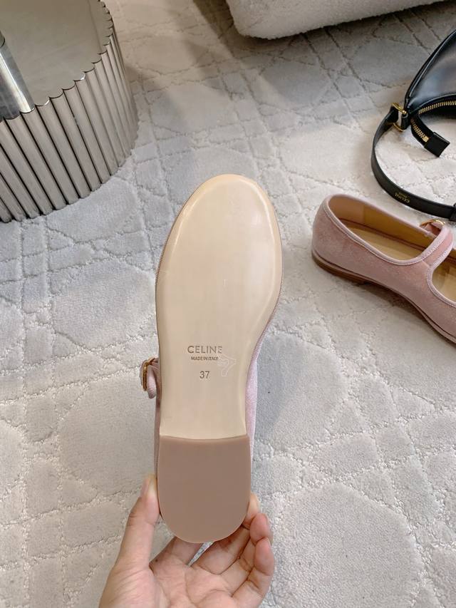出厂价P Celin*新款玛丽珍平底鞋 这一季的美到心坎里了 超级百搭时髦的老钱风 上脚超级舒适 随意穿出高级感 鞋面进口丝绒 内里垫脚羊皮 意大利真皮大底 尺