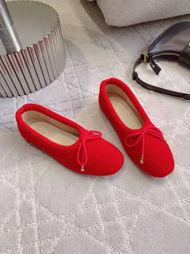 出厂价p DDD Celin*新款羊绒平底鞋 这一季的美到心坎里了 超级百搭时髦的老钱风 上脚超级舒适 随意穿出高级感 DDD 鞋面进口羊驼绒 内里垫脚羊皮 意大利真皮大底 尺码35-39 40定做 DDD