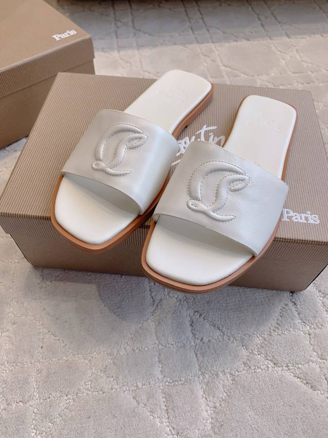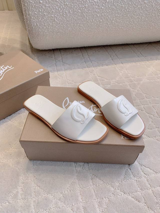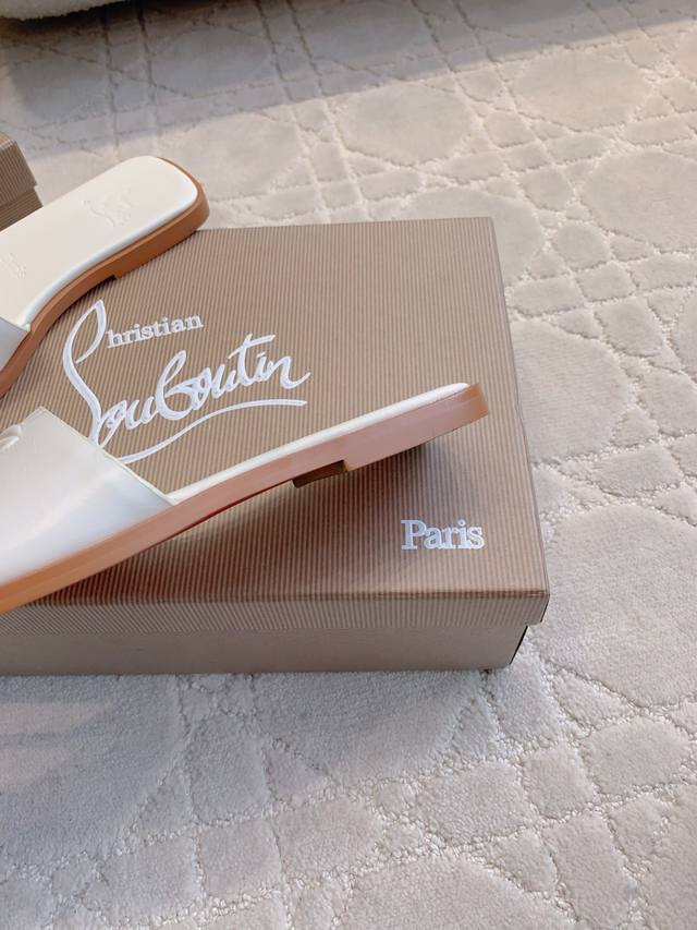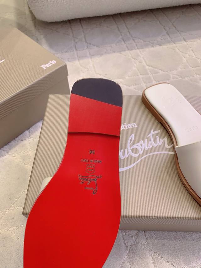 / 出厂价P DDD Christian Loubouti*新款粗高跟拖鞋 简约百搭款 好穿不累脚 DDD 鞋面牛皮 内里垫脚羊皮 意大利真皮大底 跟高 平底 5.