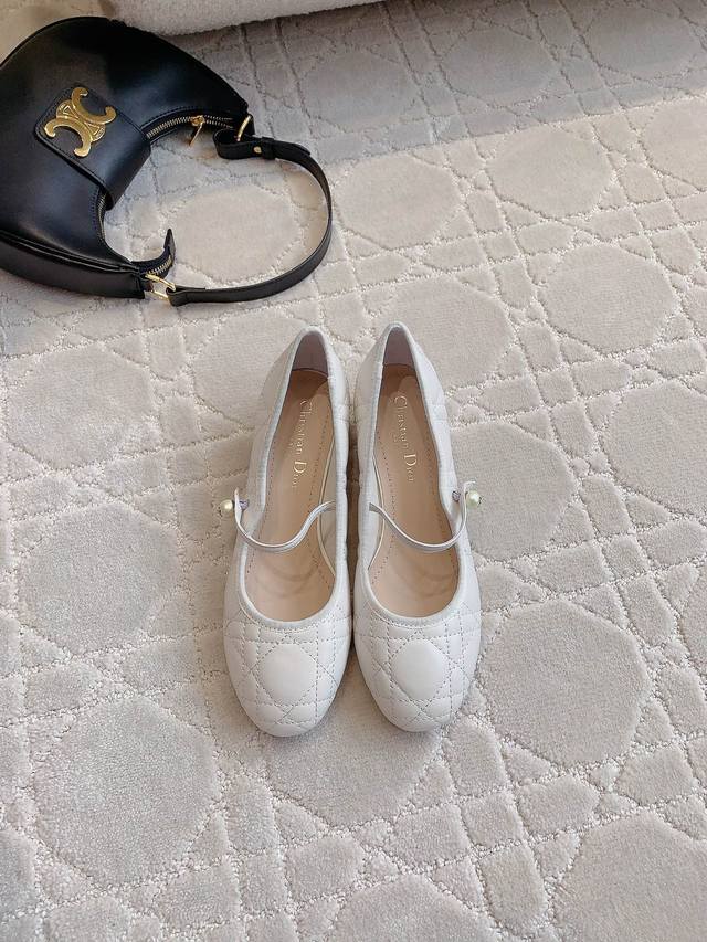 / 出厂价P Dio*新款菱格珍珠粗跟玛丽珍单鞋 精致又乖巧 舒适好穿 上脚效果绝绝子 鞋面超软羊皮 内里垫脚羊皮 原版开模珍珠Logo 意大利真皮大底 尺码35-