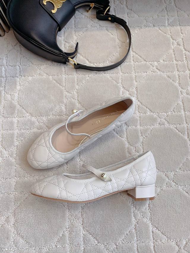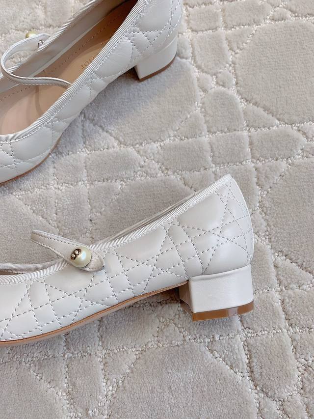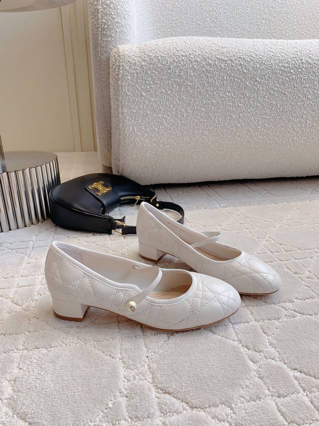 Dio*新款菱格珍珠粗跟玛丽珍单鞋 精致又乖巧 舒适好穿 上脚效果绝绝子