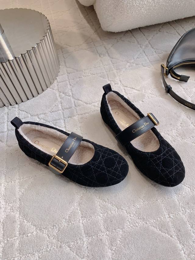 / 出厂价p Dio*新款菱格羊毛玛丽珍鞋 舒适保暖 精致又乖巧 舒适好穿 上脚效果绝绝子 鞋面进口牛反绒 内里垫脚进口羊毛 原版开模大底 尺码35-39 40 4