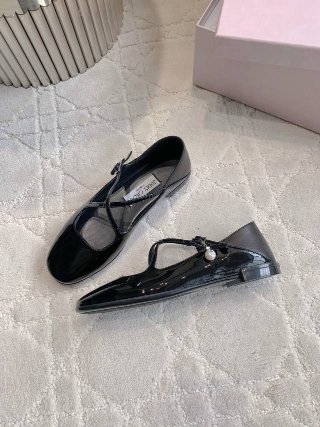 出厂价P Jimmy Cho*新款珍珠玛丽珍鞋 乖巧减龄 蝴蝶结珍珠装饰尽显复古精致 原版开模五金质感没得说 脚感舒适 经典百搭款 鞋面牛漆皮 内里垫脚羊皮 原