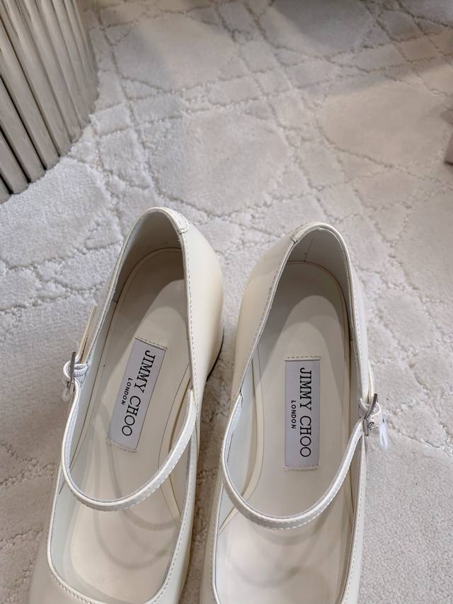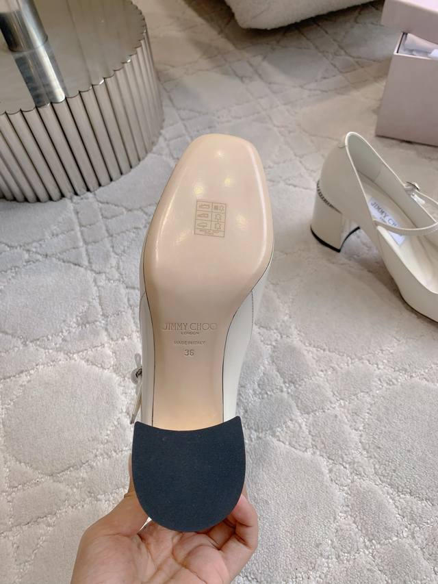 出厂价p Jimmy Cho*新款粗跟玛丽珍高跟鞋单鞋 珍珠吊坠精致优雅 经典百搭款 粗跟设计非常好穿 鞋面牛漆皮 内里垫脚羊皮 跟高7Cm 意大利真皮大底 尺