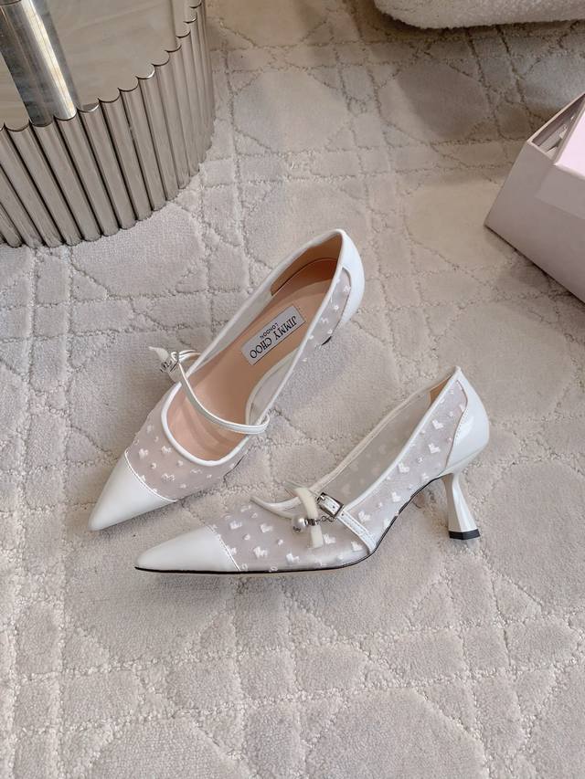 出厂价p Jimmy Cho*新款网纱刺绣高跟单鞋 经典百搭款 温柔知性风 舒适好穿 鞋面牛皮拼接网纱刺绣 垫脚羊皮 跟高6.5Cm 意大利真皮大底 尺码35-