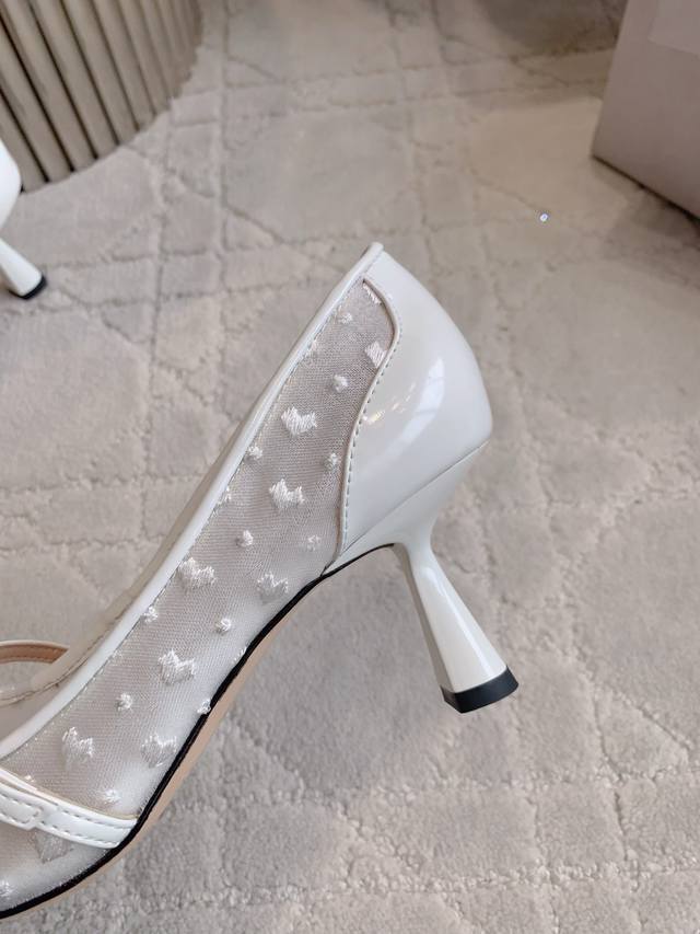 出厂价p DDD Jimmy Cho*新款网纱刺绣高跟单鞋 经典百搭款 温柔知性风 舒适好穿 DDD 鞋面牛皮拼接网纱刺绣 垫脚羊皮 跟高6.5Cm 意大利真皮大底 尺码35-39 40定做 DDD