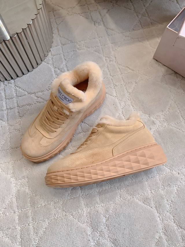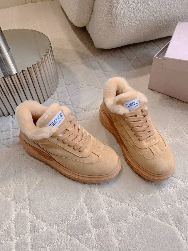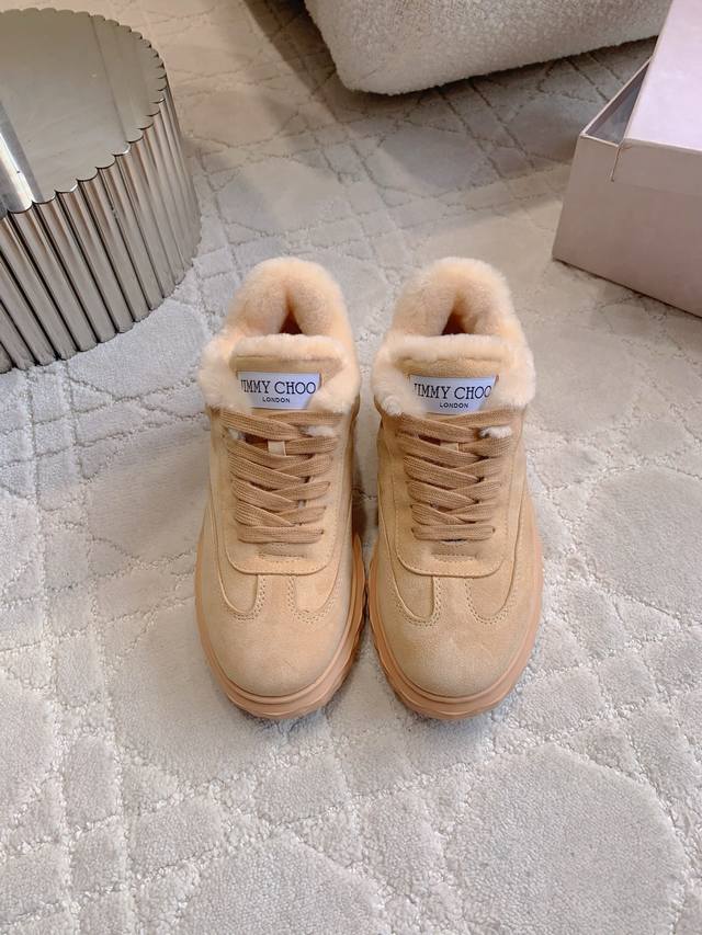 / 出厂价p Jimmy Cho*新款羊毛保暖休闲鞋 超级厚实保暖 经典百搭款 鞋面牛皮 内里垫脚进口澳洲一体羊皮毛 原版开模大底 尺码35-39 40定做