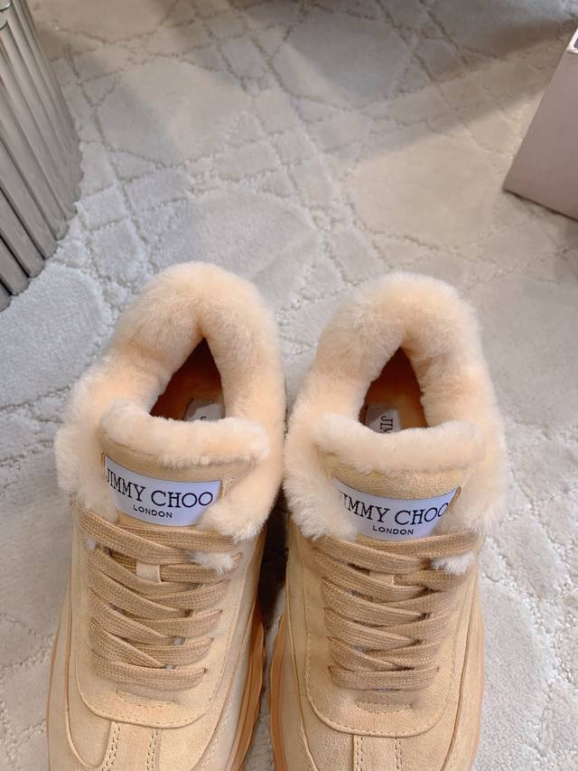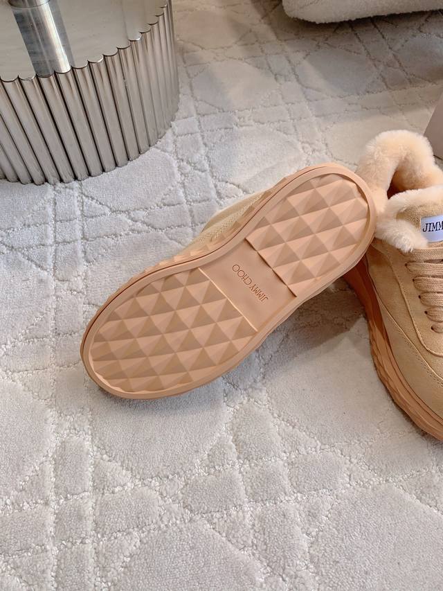 出厂价p Jimmy Cho*新款羊毛保暖休闲鞋 超级厚实保暖 经典百搭款 鞋面牛皮 内里垫脚进口澳洲一体羊皮毛 原版开模大底 尺码35-39 40定做