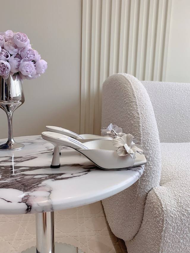Jimmy Cho*新款花朵高跟拖鞋 纯手工打造小羊皮花瓣 超美超重工 上脚浪漫又温柔 妥妥的小仙女的鞋子