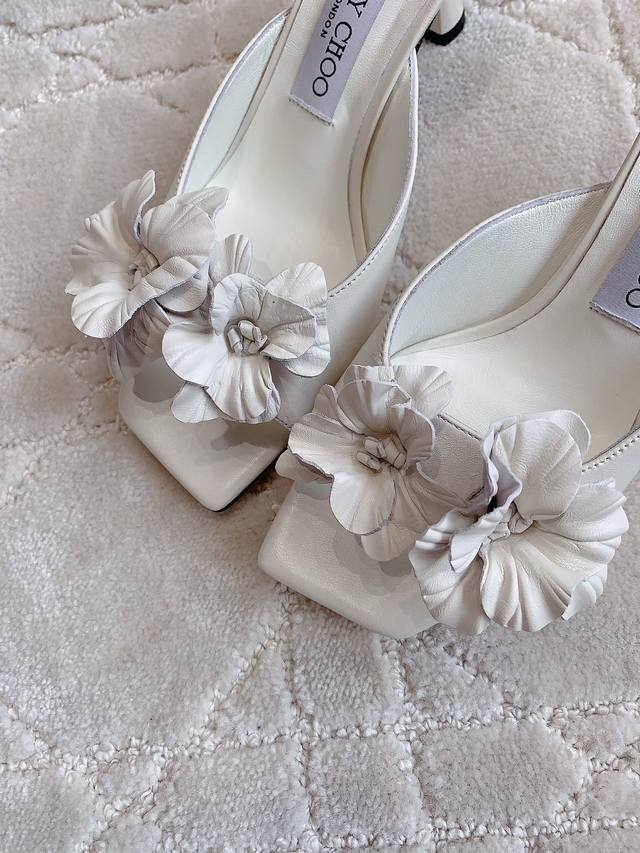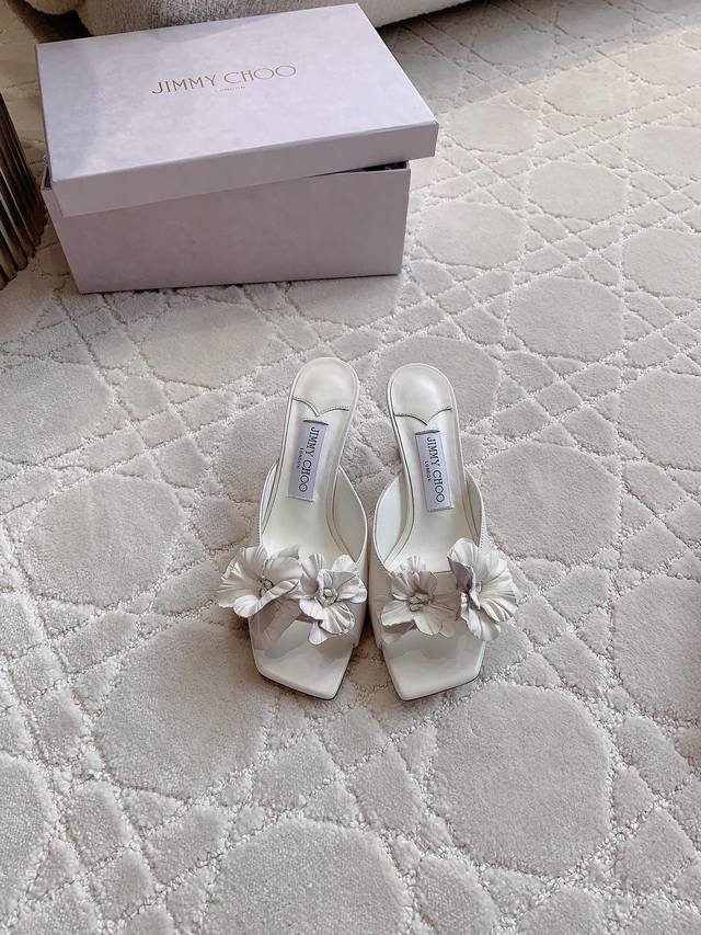 出厂价p Jimmy Cho*新款花朵高跟拖鞋 纯手工打造小羊皮花瓣 超美超重工 上脚浪漫又温柔 妥妥的小仙女的鞋子 鞋面羊皮 花朵羊皮 内里垫脚羊皮 意大利真