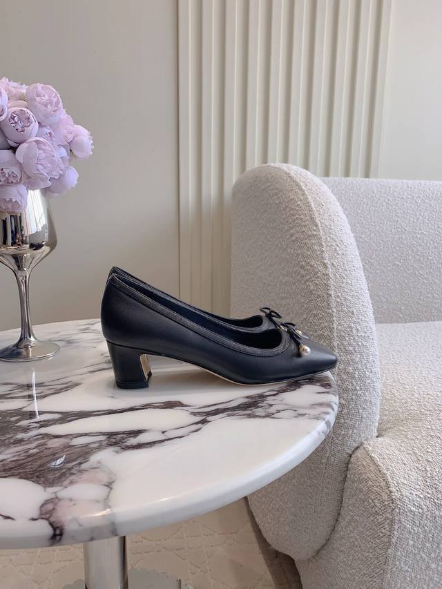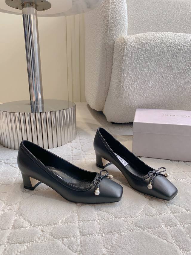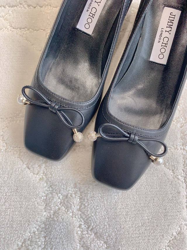 出厂价p DDD Jimmy Cho*新款蝴蝶结粗跟单鞋 超级柔软贴脚 舒适度满分 日常通勤穿着再合适不过啦 经典百搭 DDD 鞋面超软羊皮 格利特闪面 内里垫脚羊皮 原版开模珍珠五金 跟高5Cm 意大利真皮大底 尺码35-39 DDD