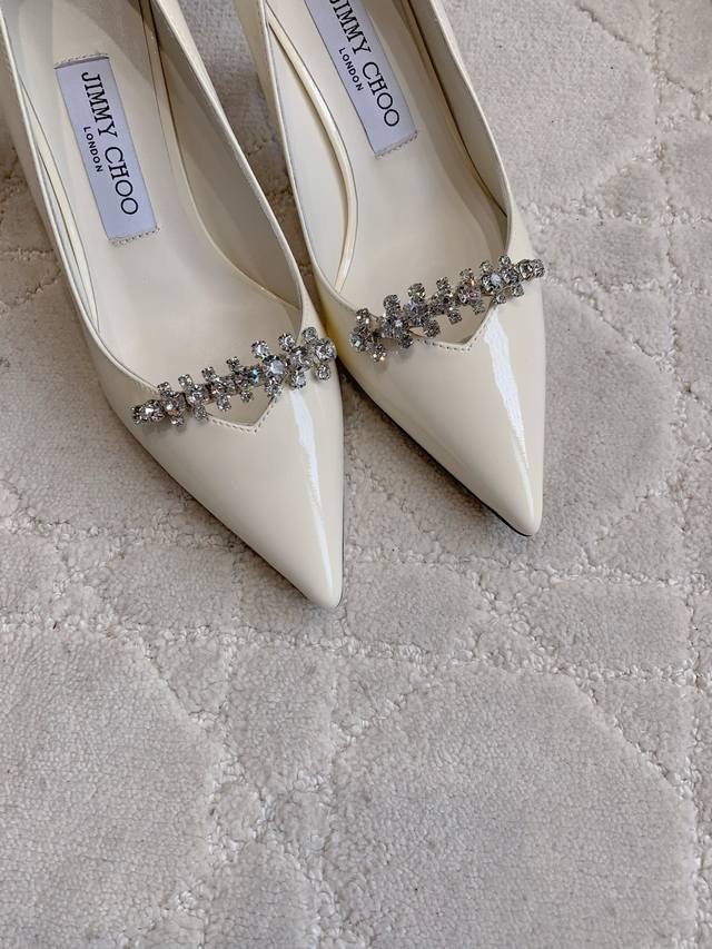 出厂价p Jimmy Cho*经典款水钻高跟单鞋 超闪的水钻设计 万年经典 入手绝对不亏的一款单品 鞋面牛漆皮 Zp开模水钻 内里垫脚羊皮 意大利真皮大底 跟高