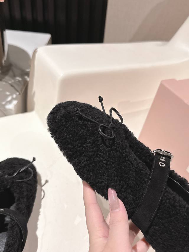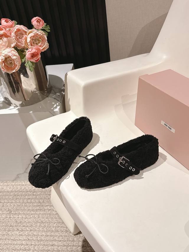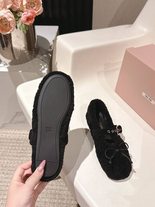 出厂价P Miu Miu 缪缪秋冬新款Deck Shoes羊羔毛船鞋平底鞋 一脚蹬 单鞋鞋 俏皮的系带蝴蝶结 内里磨毛的 设计让穿着体验度更加高涨 非常舒适又洋