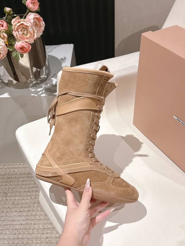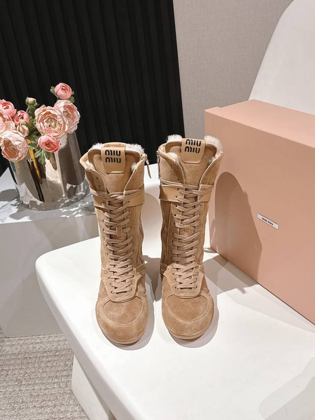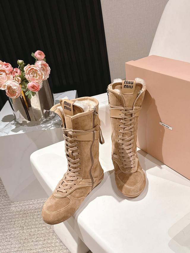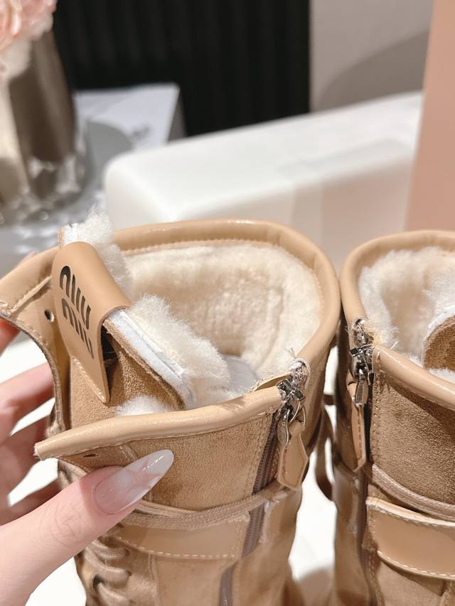 / 出厂价p Miumiu25秋冬新款雪地靴骑士靴造型,超轻原版开模鞋底,脚感妥妥满分 好穿好搭, 鞋面:进口磨砂 内里:进口羊毛 Size: #35-41 40