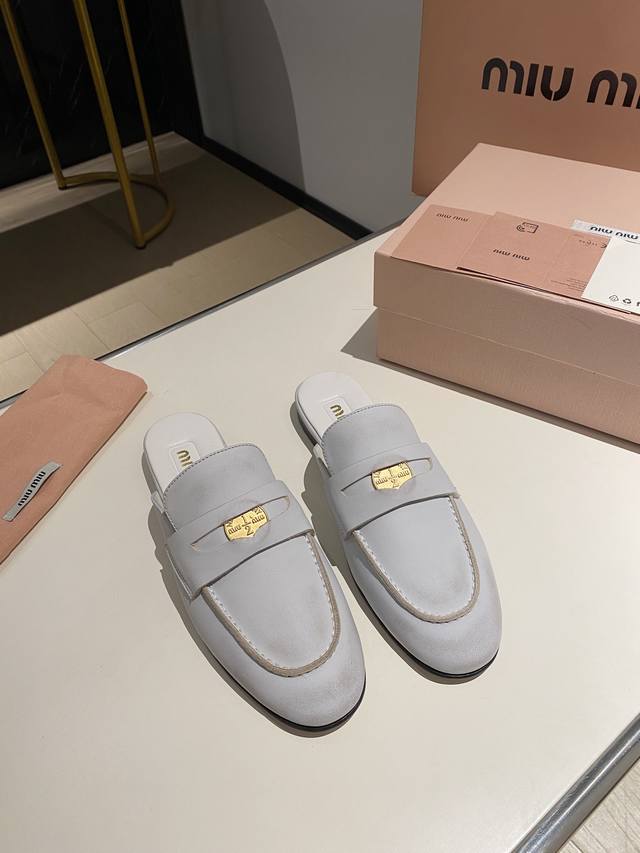 出厂价P P3402670春夏走秀款钱币半托乐福鞋!缪缪这一季这太美了吧!无敌搭配怎么穿都超级好看 钱币的设计很复古很时尚!
