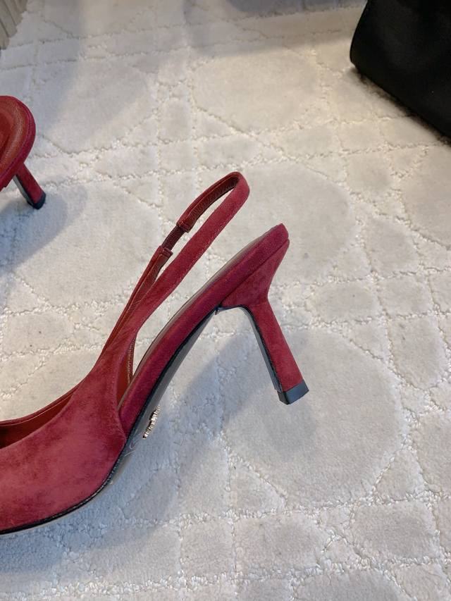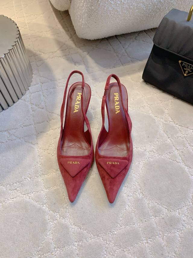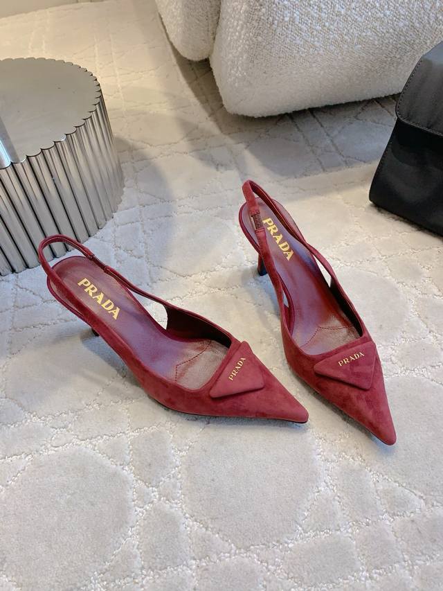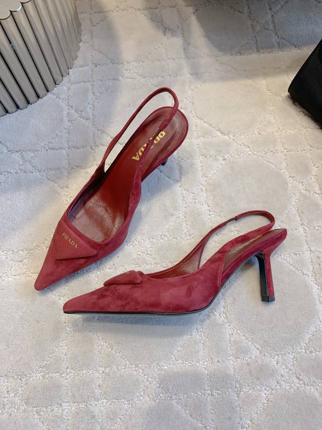 / 出厂价p prad*新款尖头麂皮高跟鞋 经典三角标点缀 简约的高级感 上脚真的很显瘦 气质小姐姐单心头爱 绝绝子好看 鞋面原版羊京面料 Zp开模三角标 内里垫脚