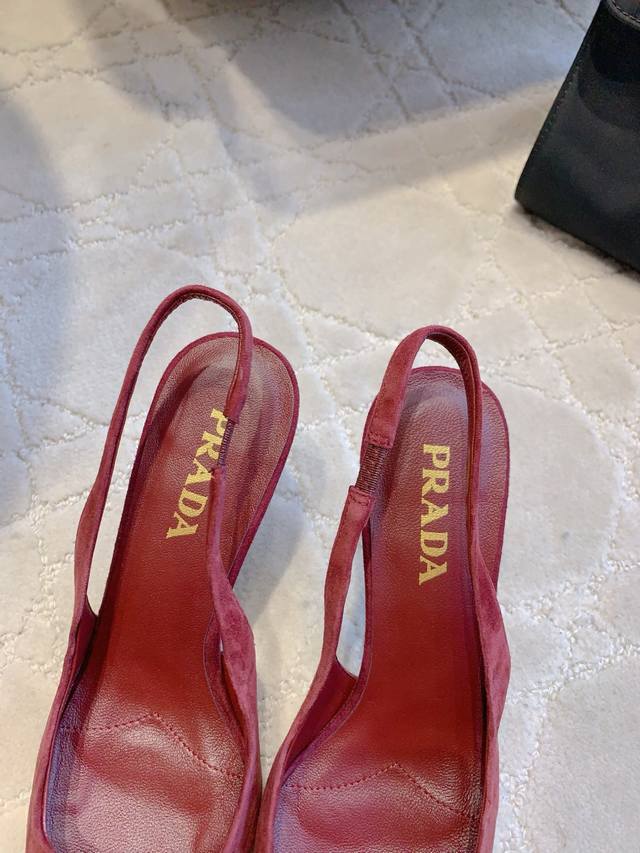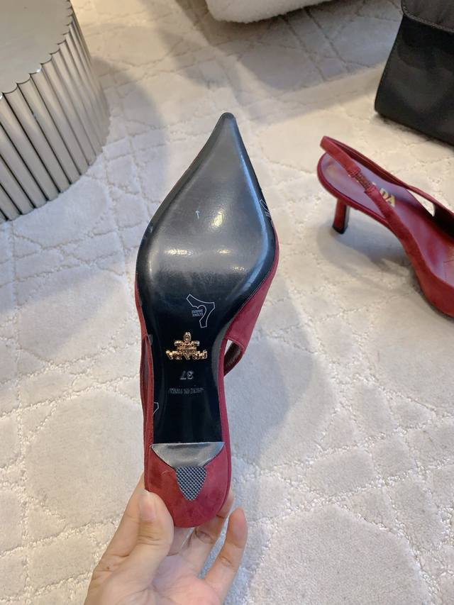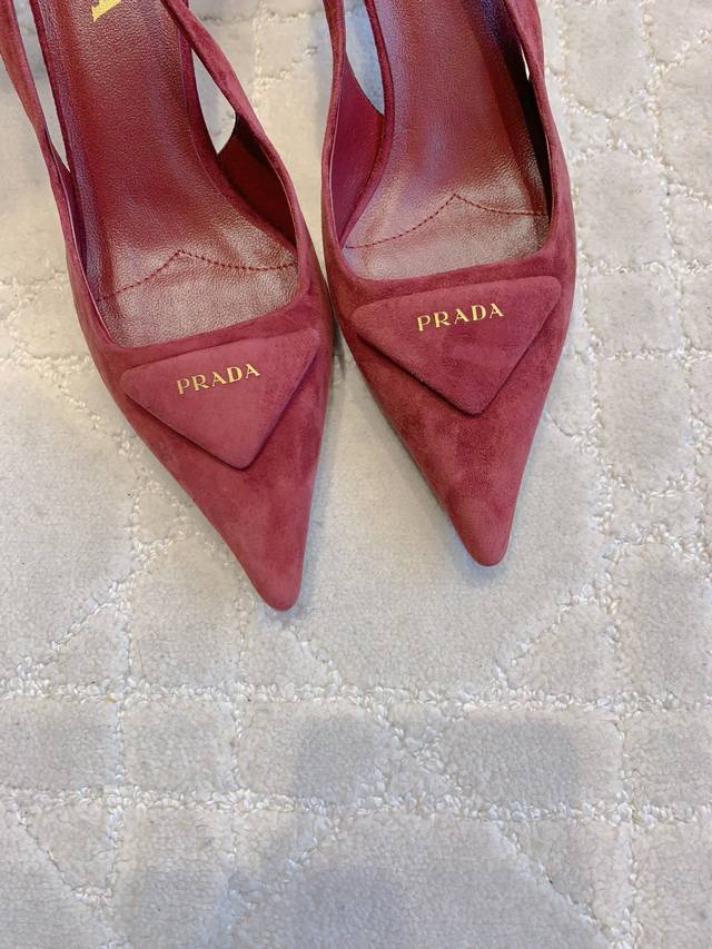 出厂价p prad*新款尖头麂皮高跟鞋 经典三角标点缀 简约的高级感 上脚真的很显瘦 气质小姐姐单心头爱 绝绝子好看 鞋面原版羊京面料 Zp开模三角标 内里垫脚