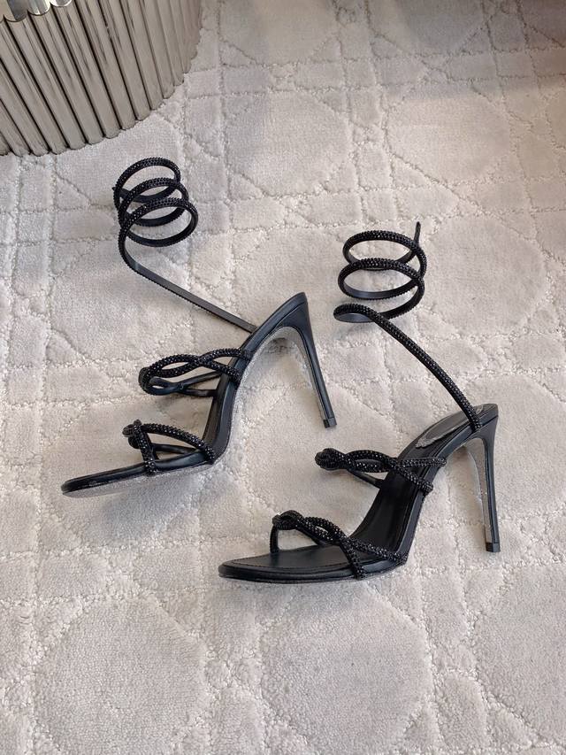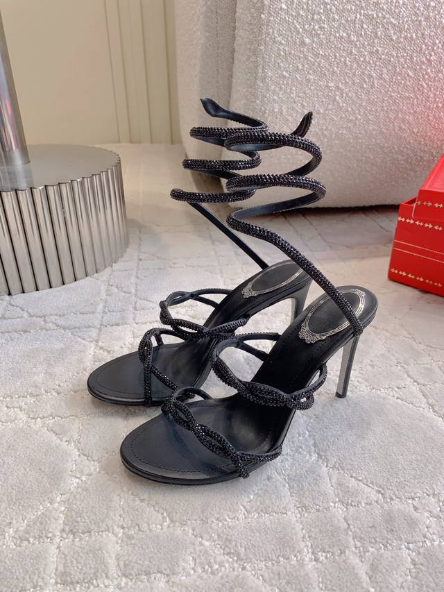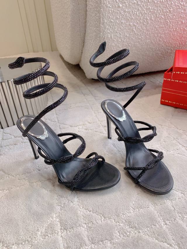 出厂价p DDD Ren* Caovill*蛇形水钻高跟凉鞋 上脚仙气十足 堪称工艺品! DDD 鞋面真丝超闪水钻 垫脚羊皮 意大利真皮大底 跟高9.5Cm 码数35-39 34 40 41 42 43定做 DDD
