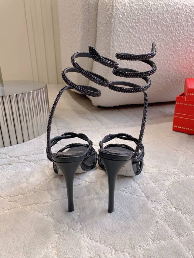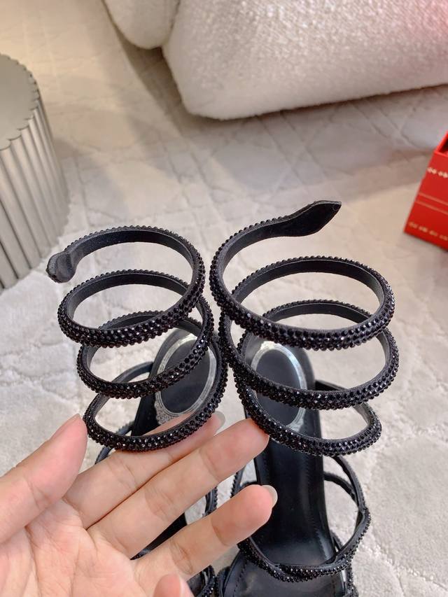 / 出厂价p Ren* Caovill*蛇形水钻高跟凉鞋 上脚仙气十足 堪称工艺品! 鞋面真丝超闪水钻 垫脚羊皮 意大利真皮大底 跟高9.5Cm 码数35-39 3