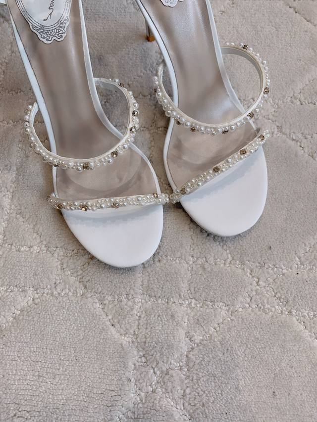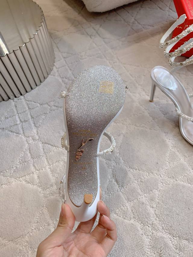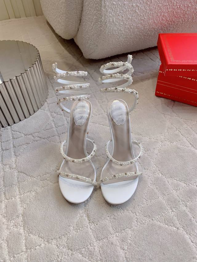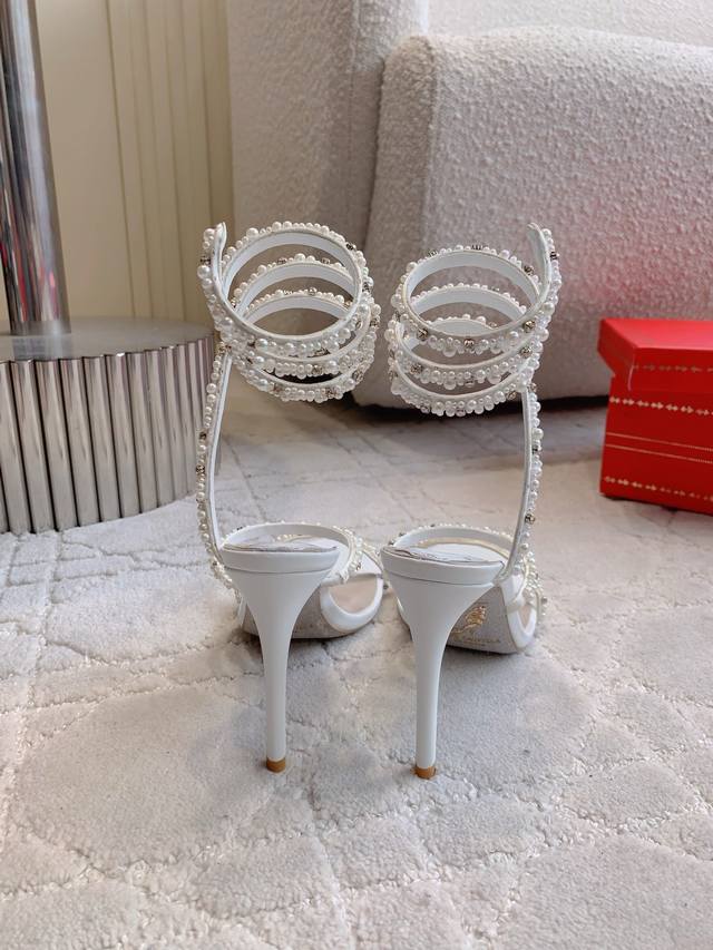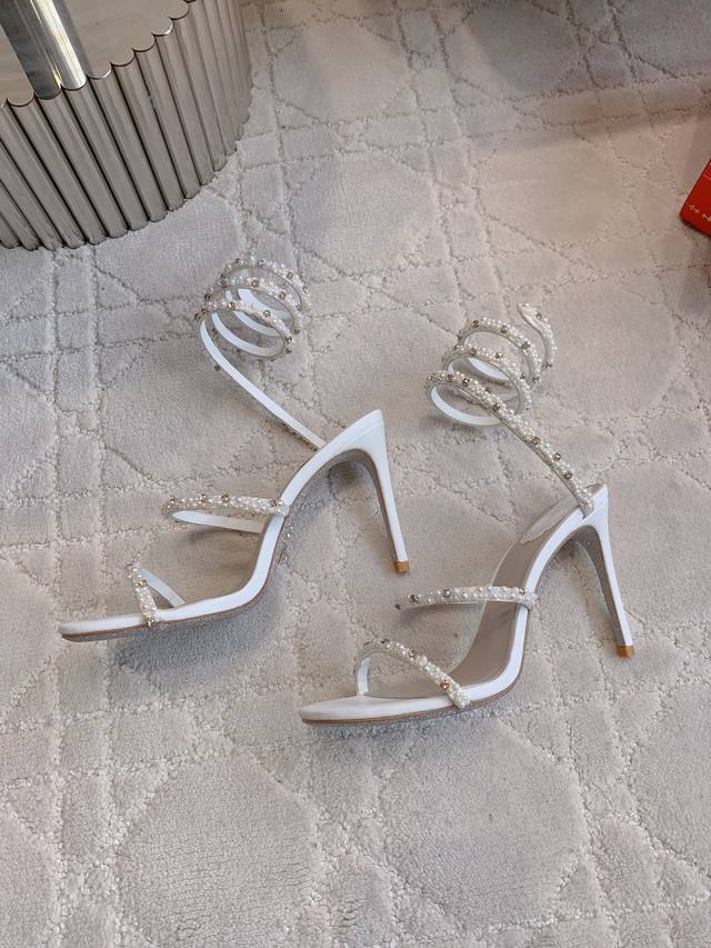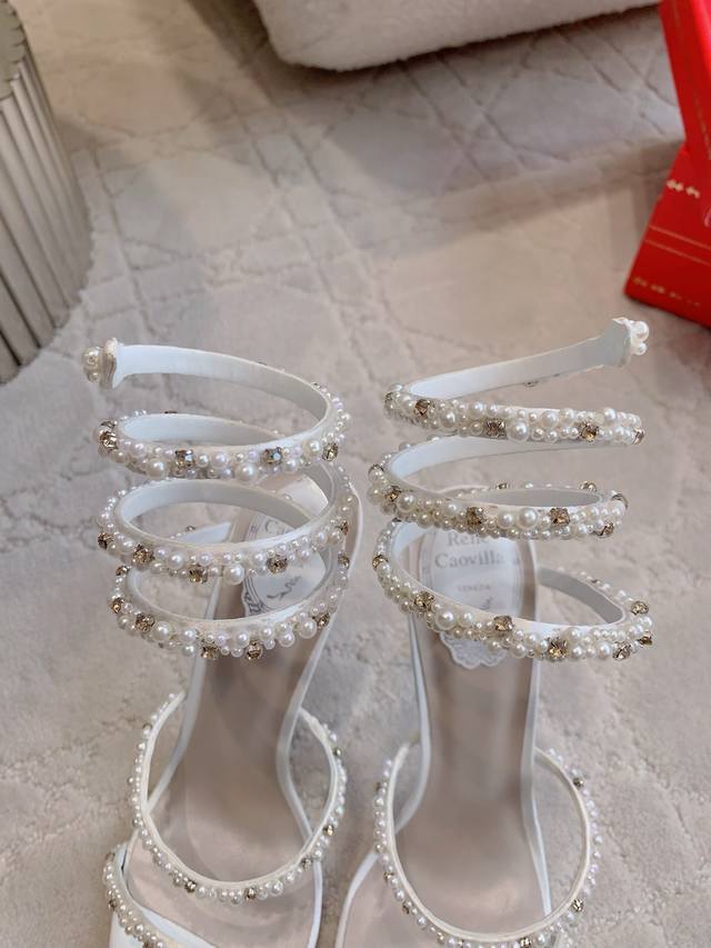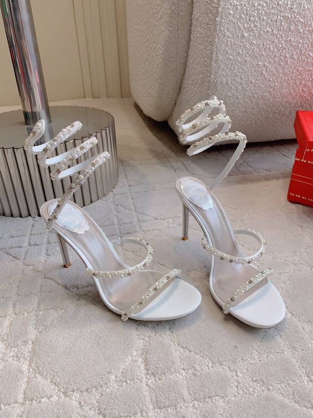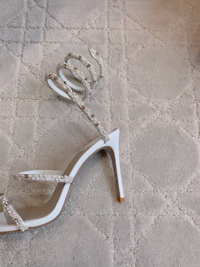 出厂价P Ren* Caovill*蛇形珍珠高跟凉鞋 上脚仙气十足 堪称工艺品! 鞋面纯手工缝制珍珠 垫脚羊皮 意大利真皮大底 跟高9.5Cm 码数35-39