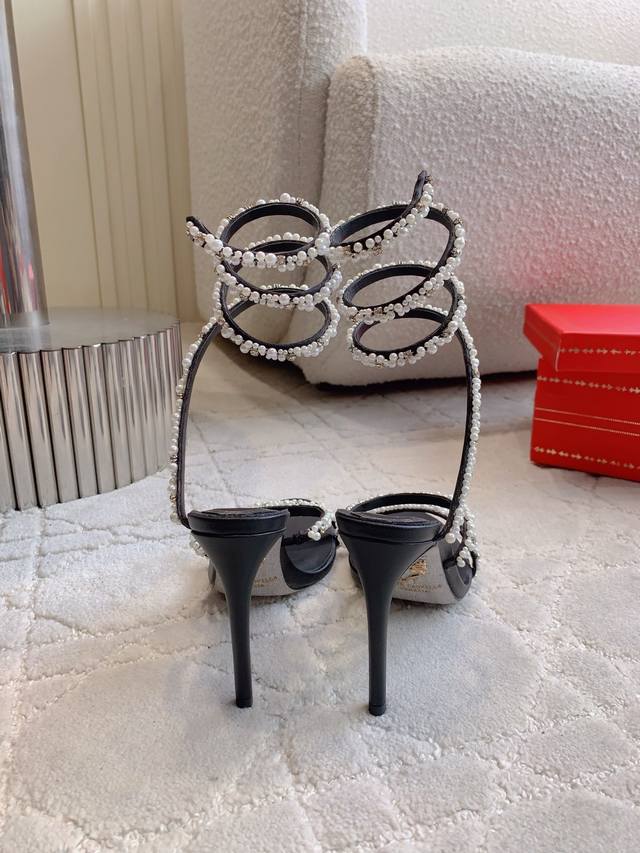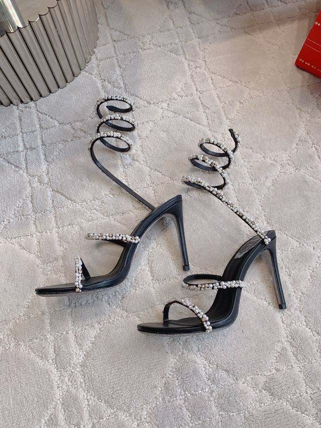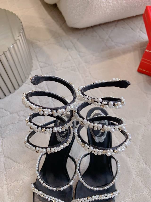 出厂价p DDD Ren* Caovill*蛇形珍珠高跟凉鞋 上脚仙气十足 堪称工艺品! DDD 鞋面纯手工缝制珍珠 垫脚羊皮 意大利真皮大底 跟高9.5Cm 码数35-39 34 40 41 42 43定做 DDD