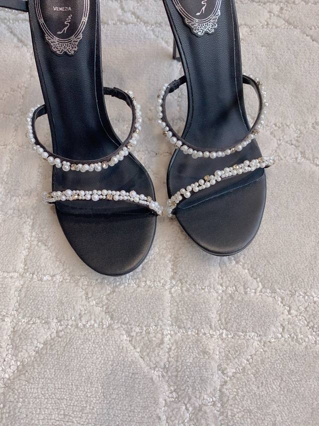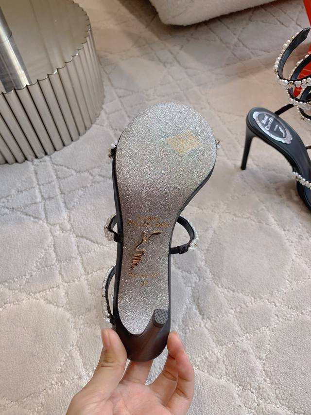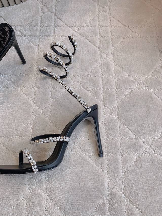 / 出厂价p Ren* Caovill*蛇形珍珠高跟凉鞋 上脚仙气十足 堪称工艺品! 鞋面纯手工缝制珍珠 垫脚羊皮 意大利真皮大底 跟高9.5Cm 码数35-39