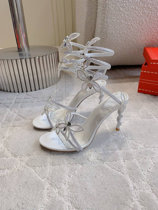 Ren* Caovill* 水晶蝴蝶高跟凉鞋 Bling Bling精致逼人 仙女蝴蝶蛇形绑带光彩熠熠 仙气十足 堪称工艺品