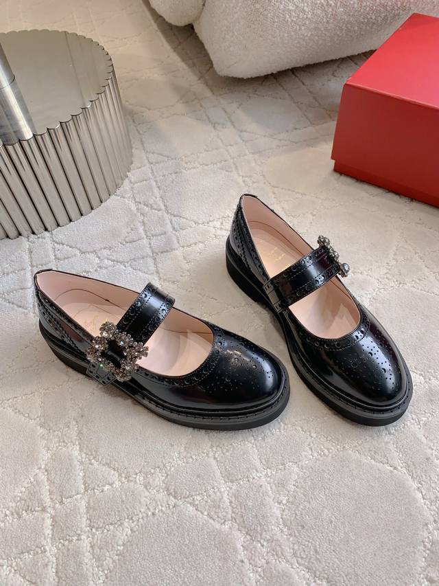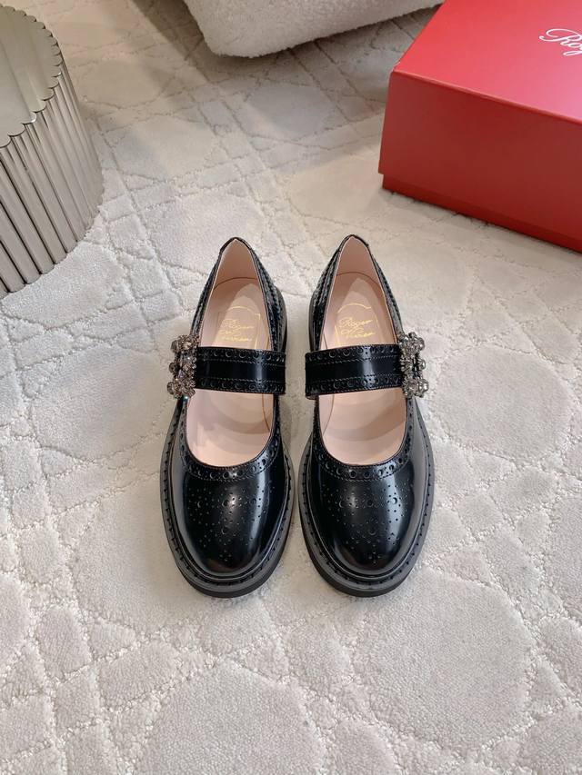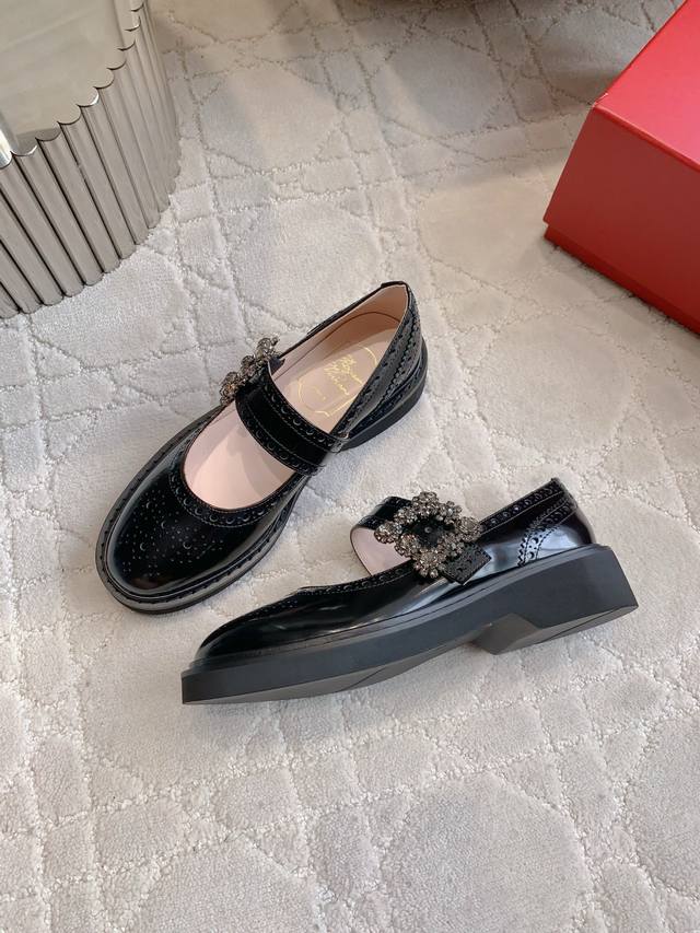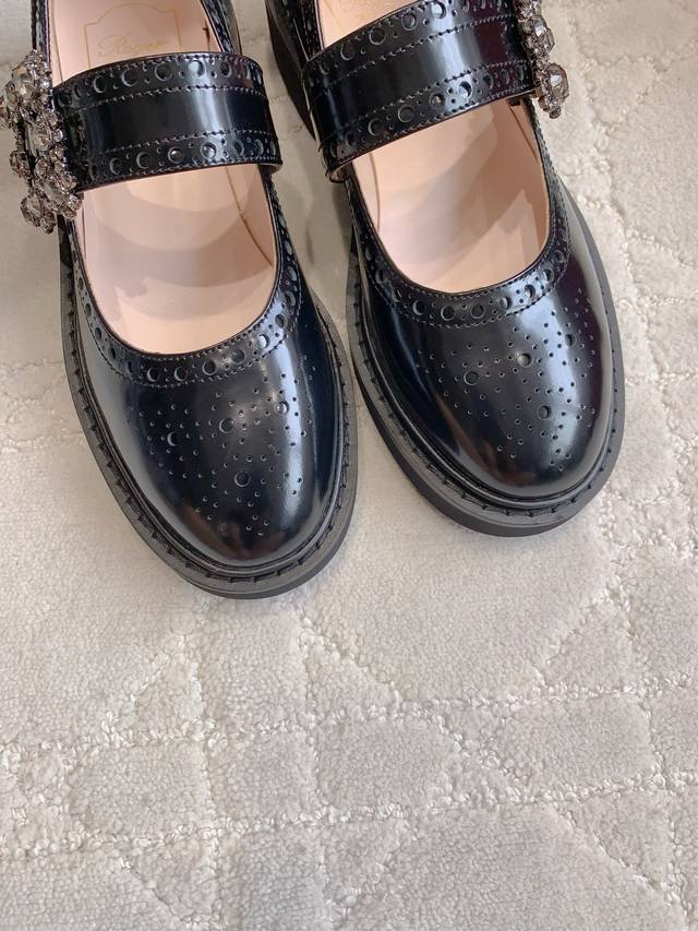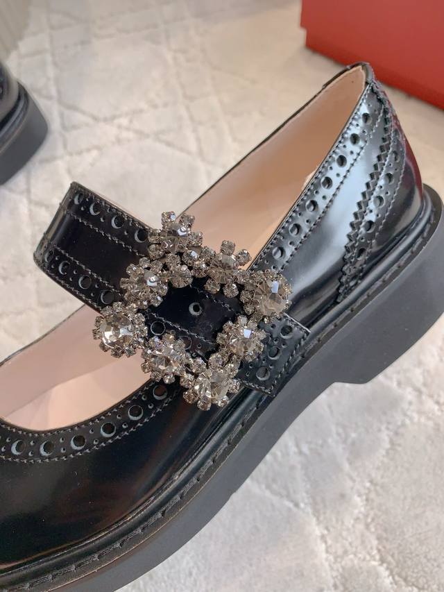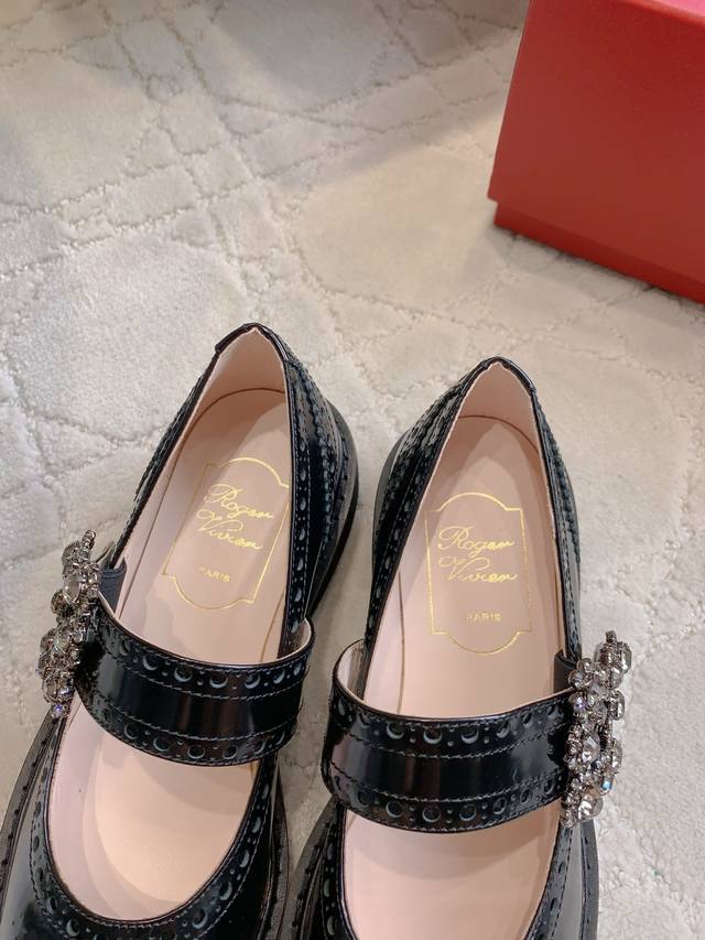 出厂价p DDD Roger Vivie*新款巴洛克水钻扣玛丽珍鞋 复古的镂空雕花元素 经典耐看 上脚舒适度太棒啦 美丽又甜酷的风格 每个女生都要有一双 DDD 鞋面开边珠牛皮 Zp开模水钻扣 内里垫脚顶级混种羊皮 原版开模大底 尺码35-39 34 40定做 DDD