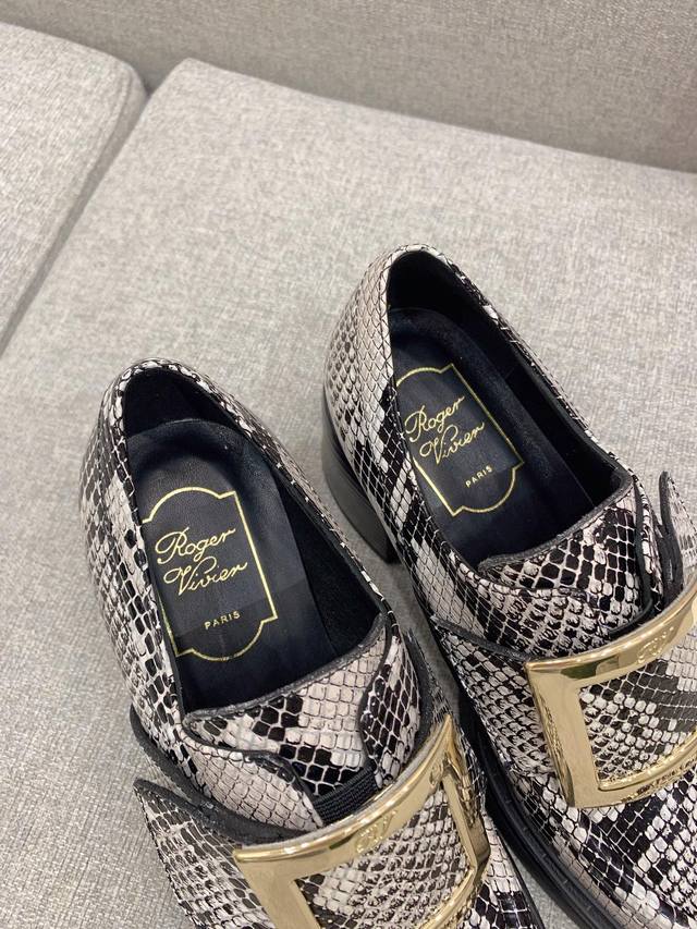 出厂价p Roger Vivie*新款方扣乐福鞋 中跟的设计 上脚舒适又轻巧 经典方扣装饰 百搭神器! 鞋面进口超软牛漆皮 原版开模金属扣 内里及垫脚顶级混种羊