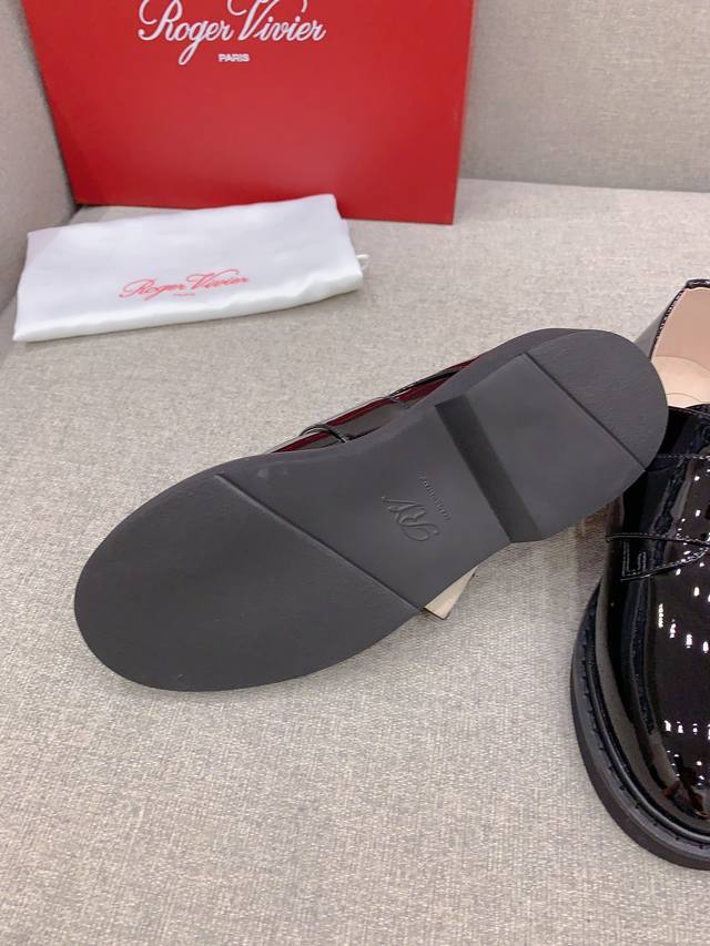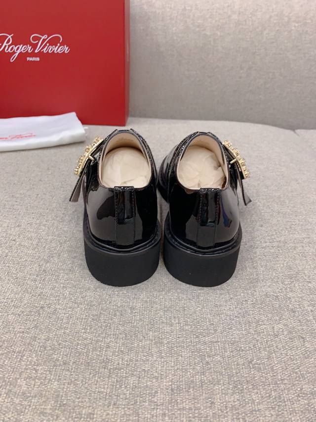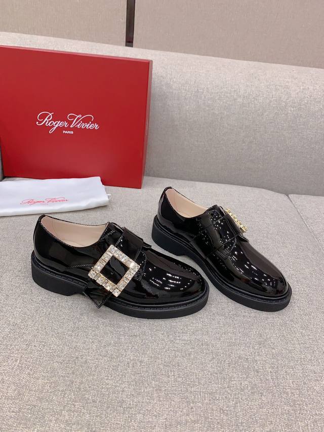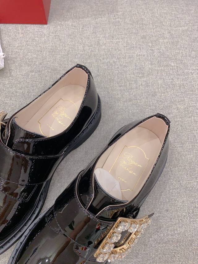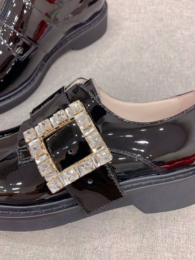 / 出厂价p Roger Vivie*新款漆皮钻扣乐福鞋 整双鞋子上脚超级温柔 乖巧减龄 好看炸了 鞋面牛漆皮 原版开模水钻扣 内里垫脚羊皮 原版开模大底 尺码35