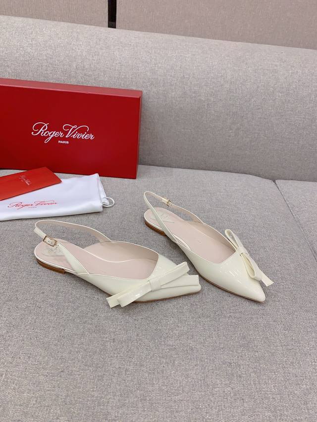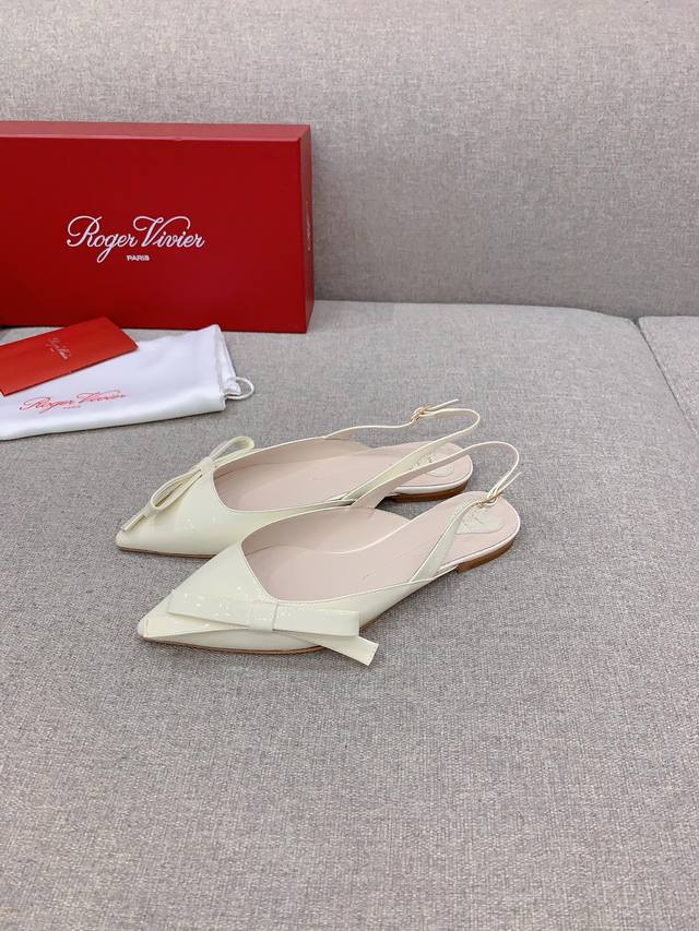 / 出厂价p Roger Vivie*新款蝴蝶结平底后空鞋 优雅精致 脚感舒适 甜美淑女风 上脚精致又减龄 鞋面原版牛漆皮 内里垫脚顶级混种羊皮 意大利真皮大底 尺