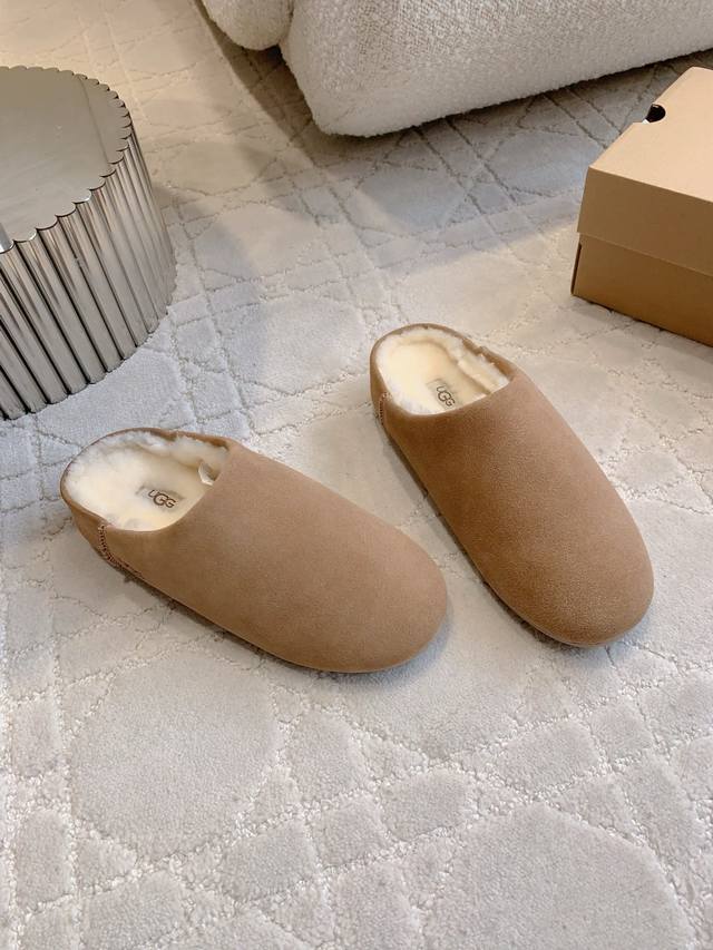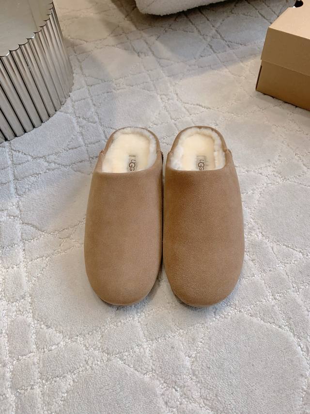 出厂价p Ugg新款羊毛保暖半拖鞋 超级厚实保暖 经典百搭款 鞋面牛皮 内里垫脚进口澳洲一体羊皮毛 尺码35-39 40定做