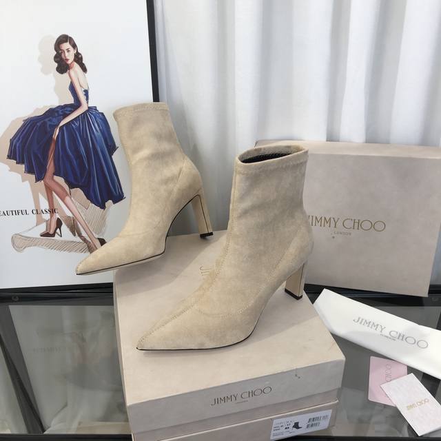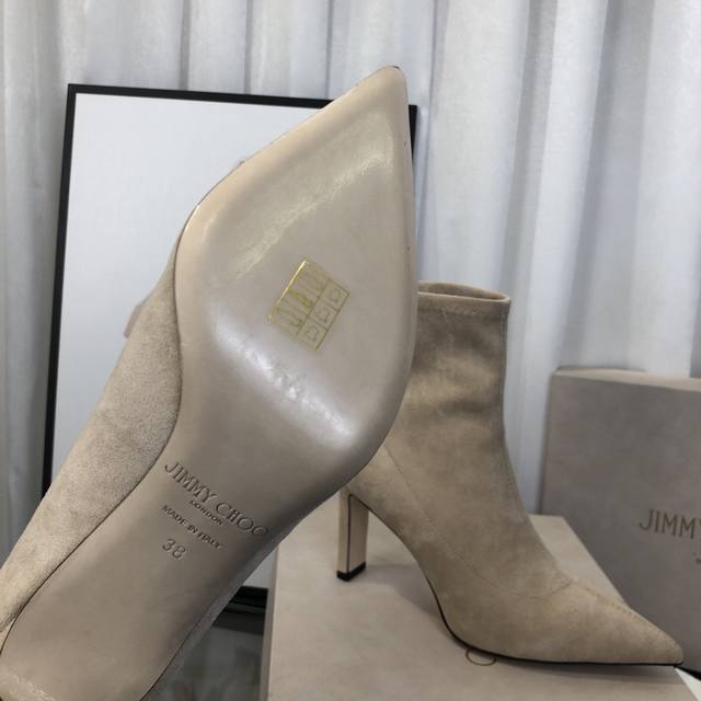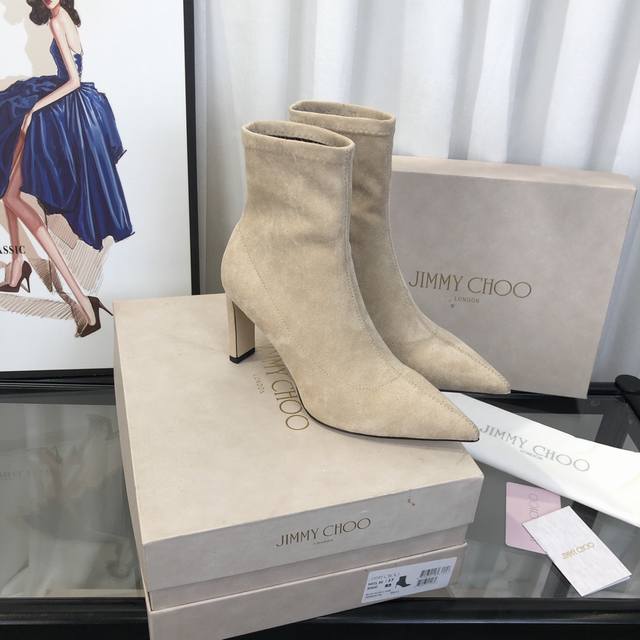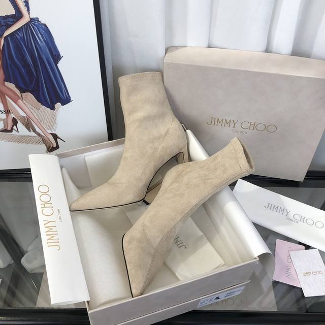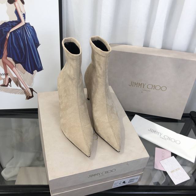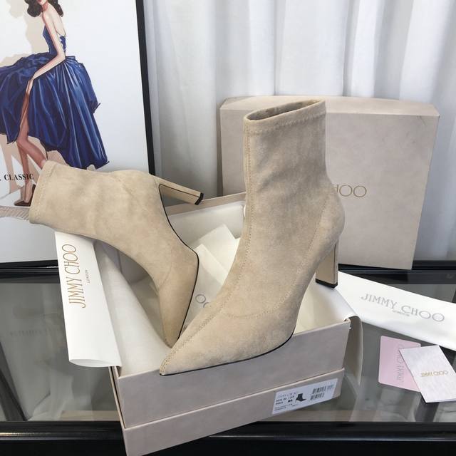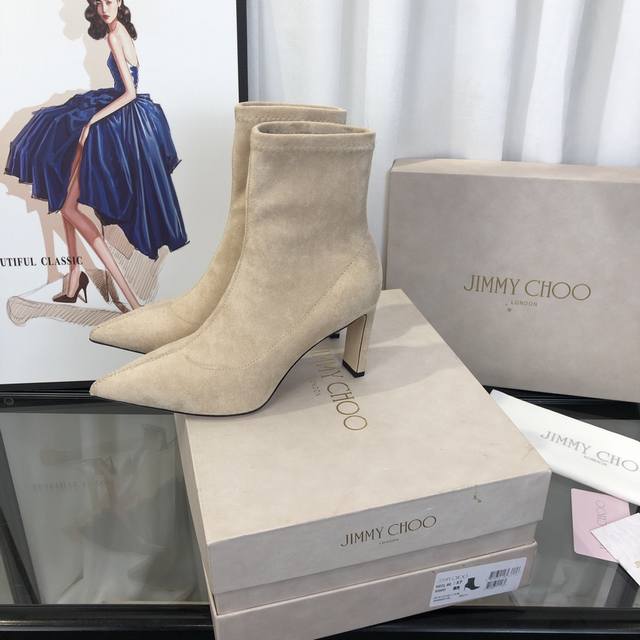 出厂价Pp:短靴 长靴 Jimmy Choo Jc经典粗跟高跟短靴 全新升级版 面料:进口弹力羊猄绒 内里:定制高密度真丝弹力莱卡进口韩国银狐绒内里 垫脚:羊皮 大底:原版意大利真皮底 跟高:8.5Cm 码数:35-39 34,40订做不退换