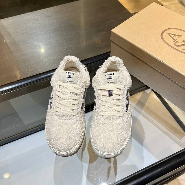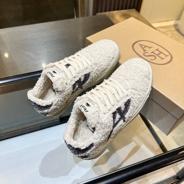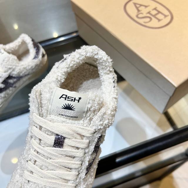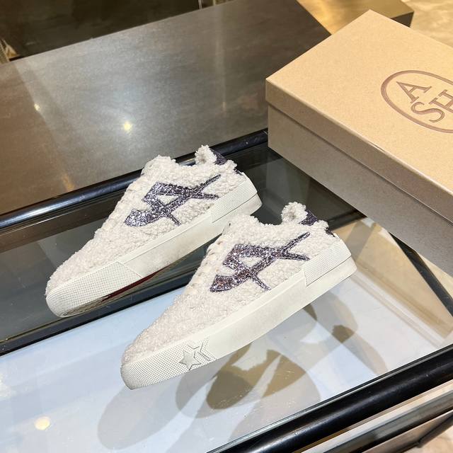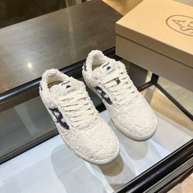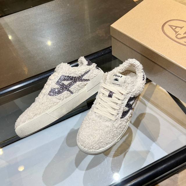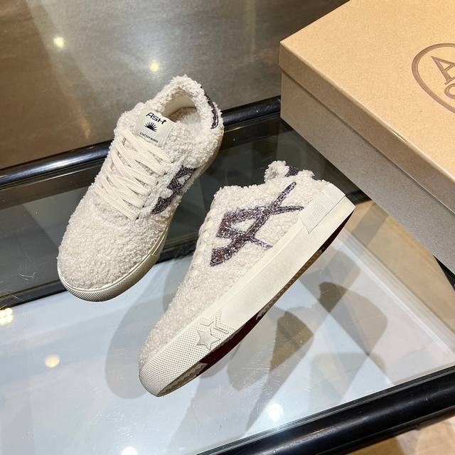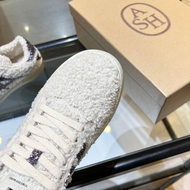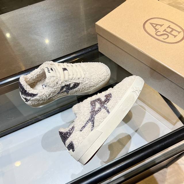 / 出厂价pp: 上新Ash 意大利轻奢潮牌复古脏脏小白鞋明星同款休闲系列,搭配轻盈回弹增高鞋底大底做旧复古效果。 面料:仿泰迪绒毛+格利特亮片 鞋底:橡胶大底 内