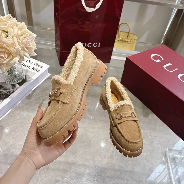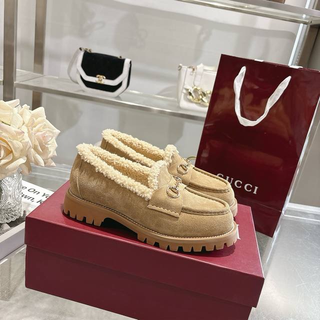 / 出厂价pp: 冬季新款羊毛内里女士马衔扣乐福鞋 精巧细节为这款乐福鞋注入优雅气息。选用光滑绒面材质,搭配美利奴羊毛衬里,更显矜贵格调。浅金色调马衔扣为这款经典而